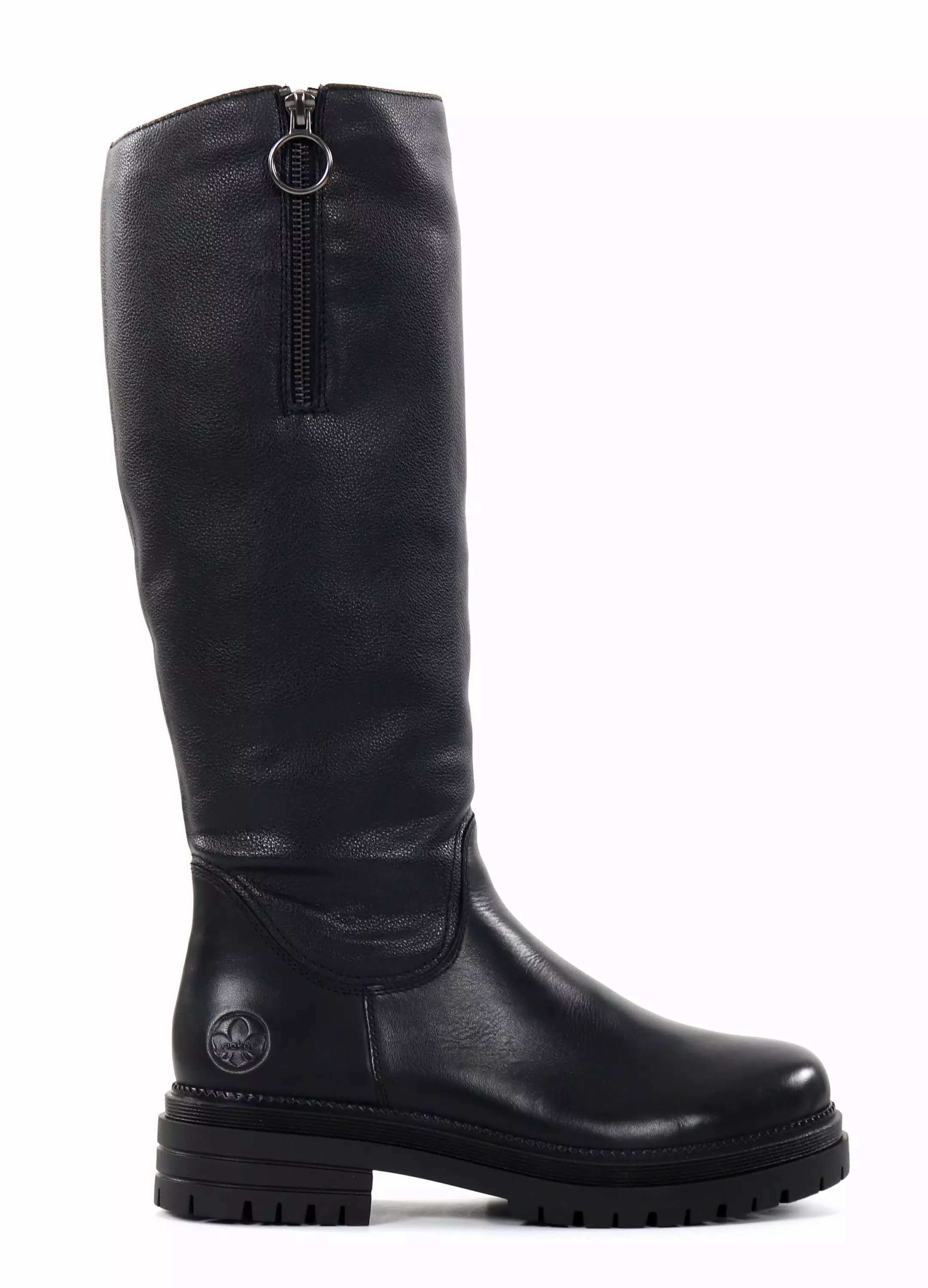 Aitonahkaiset Rieker-saappaat, joiden varteen saadaan lisätilaa ulkosyrjän vetoketjun avulla. Pitävä ja joustava kumipohja.