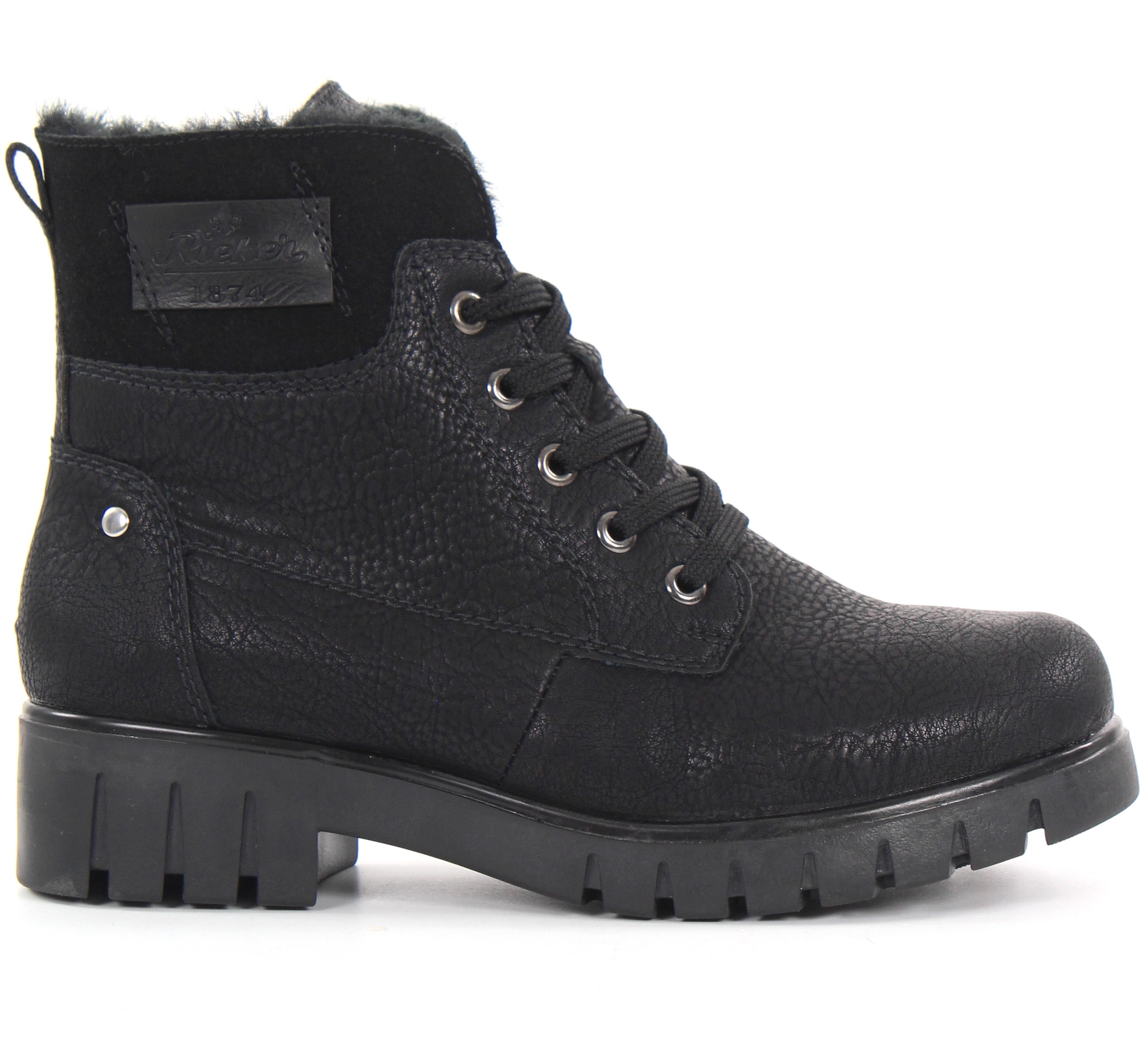 Lämpimät Rieker nilkkurit paksulla vuorilla. Ajattoman tyylikäs design.