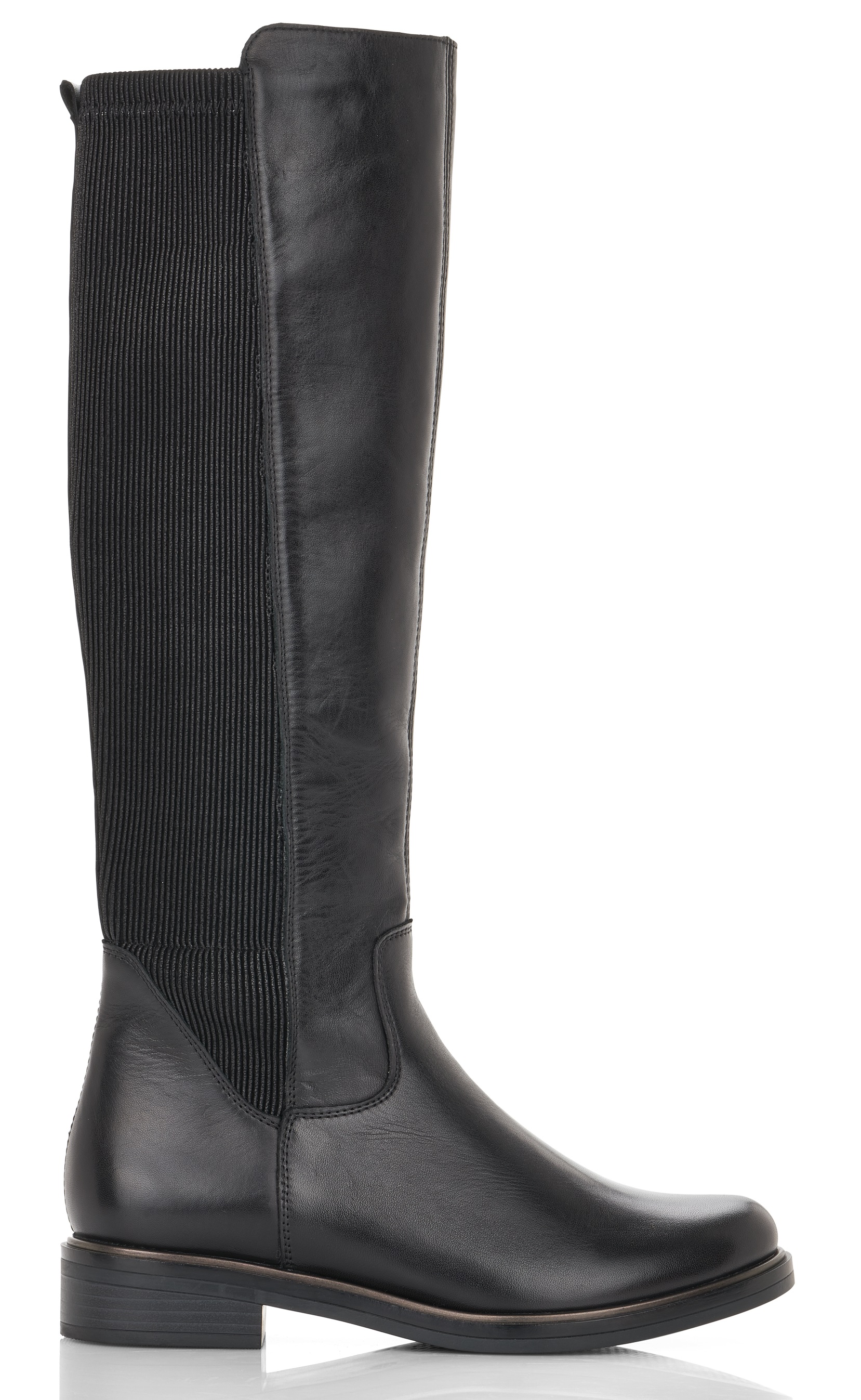 Nahkasaappaat joustavalla varrella.