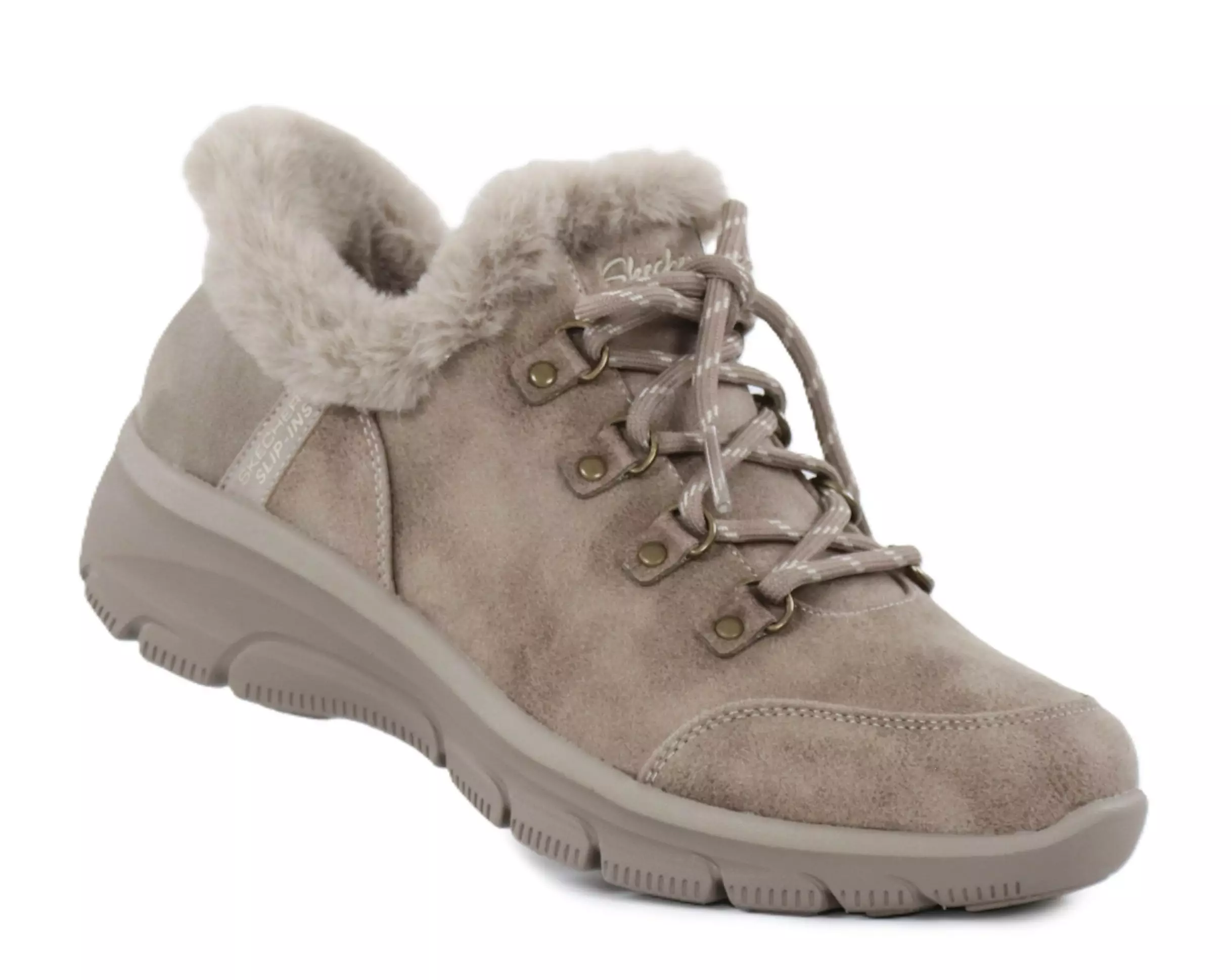 Helppokäyttöiset Skechers-nilkkurit, joiden Slip-ins-malli ja Heel Pillow -pehmuste tekevät niiden pukemisesta vaivatonta. Vettähylkivä 3M Scotchgard -käsitelty päällinen, lämmin tekoturkisvuori ja Air-Cooled Memory Foam -sisäpohja tuovat mukavuutta ja suojaa kylmiin päiviin.