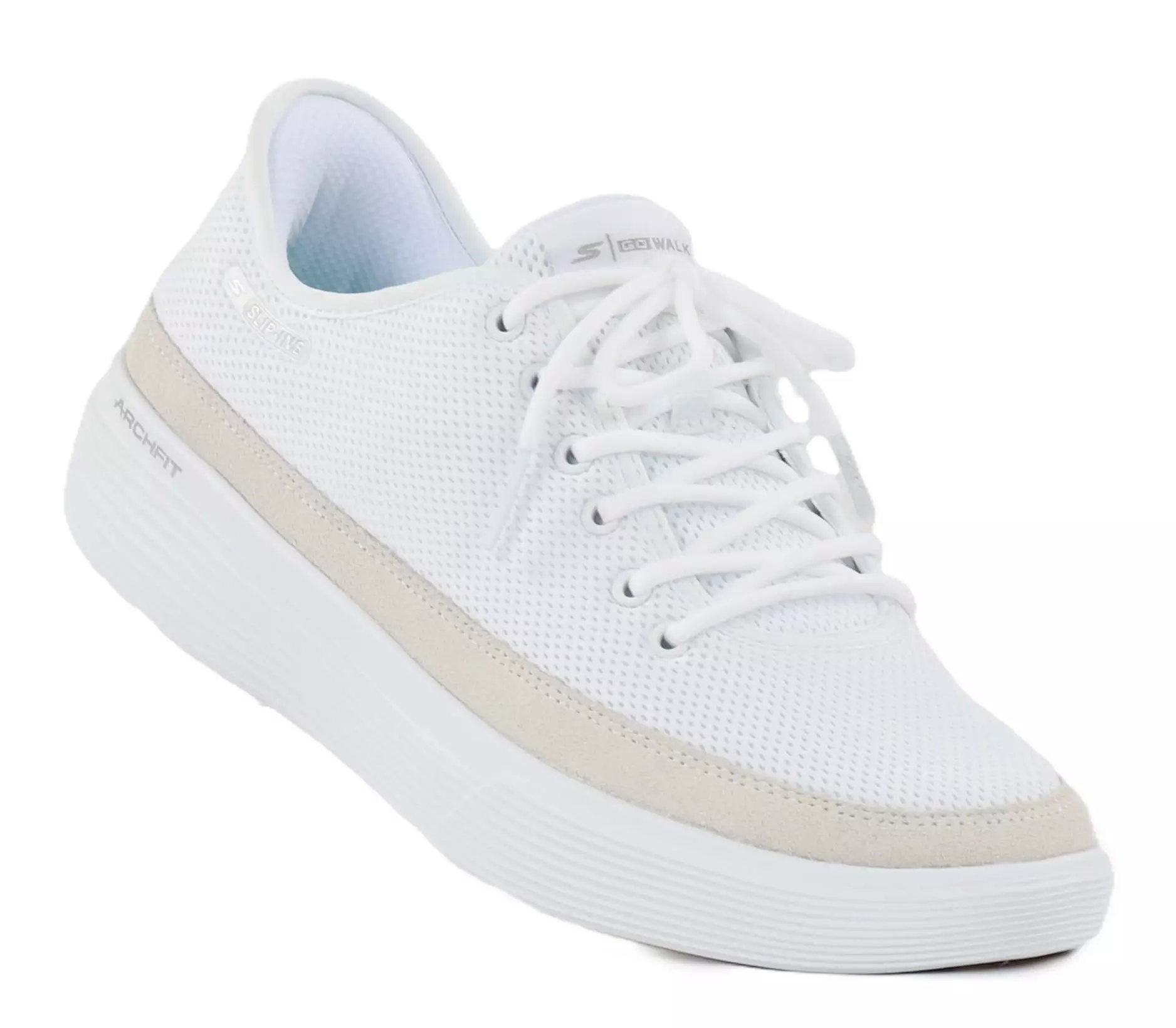 Ihastu näihin vegaanisiin slip ins-kävelykenkiin jotka sisältävät urheilullisen verkkopäällisen säädettävillä nauhoilla, Skechers Arch Fit® -sisäpohjan sekä kevyen ULTRA GO® -vaimennuksen.