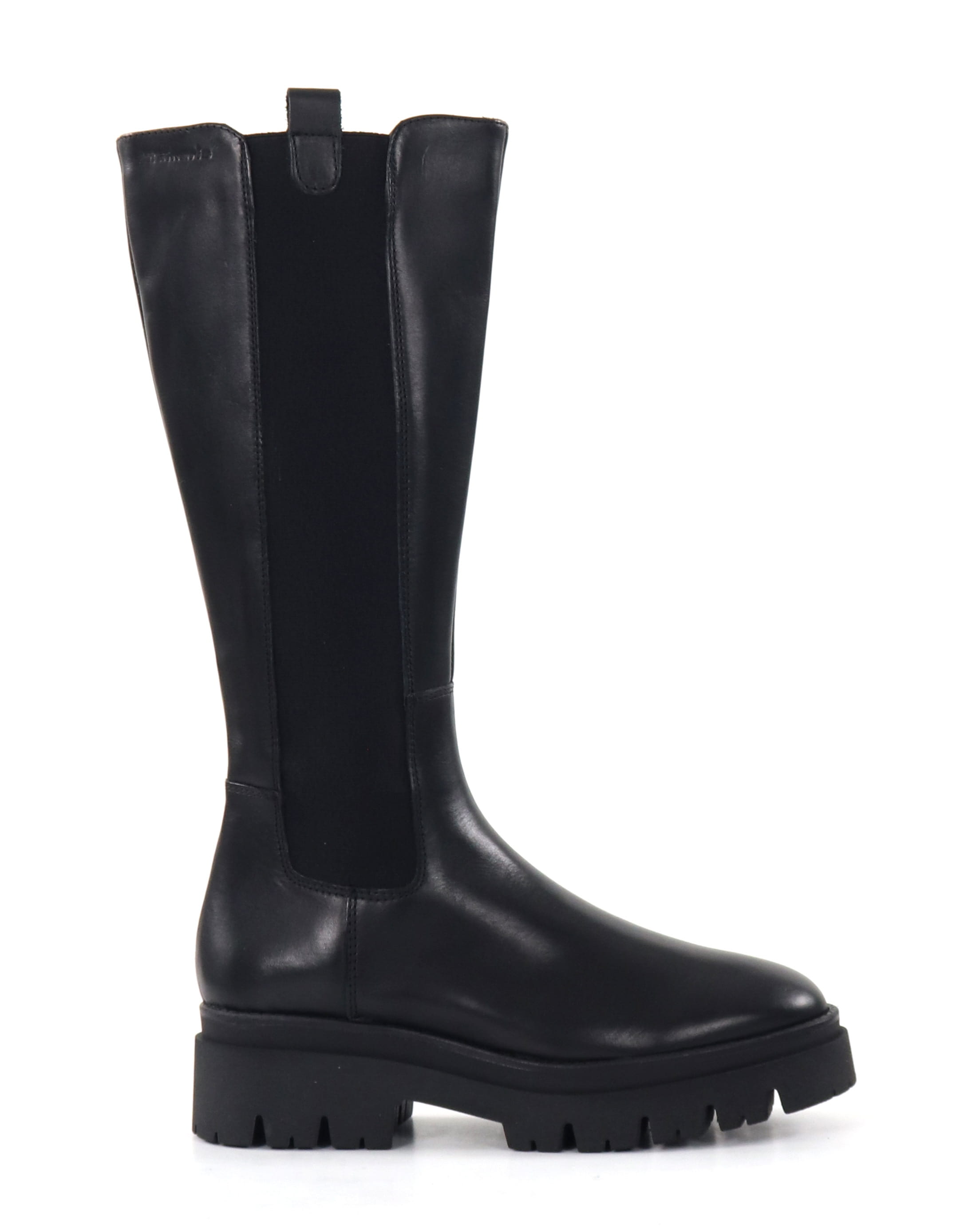 Trendikkäät, paksupohjaiset saappaat venykkeellä ja vetoketjulla.