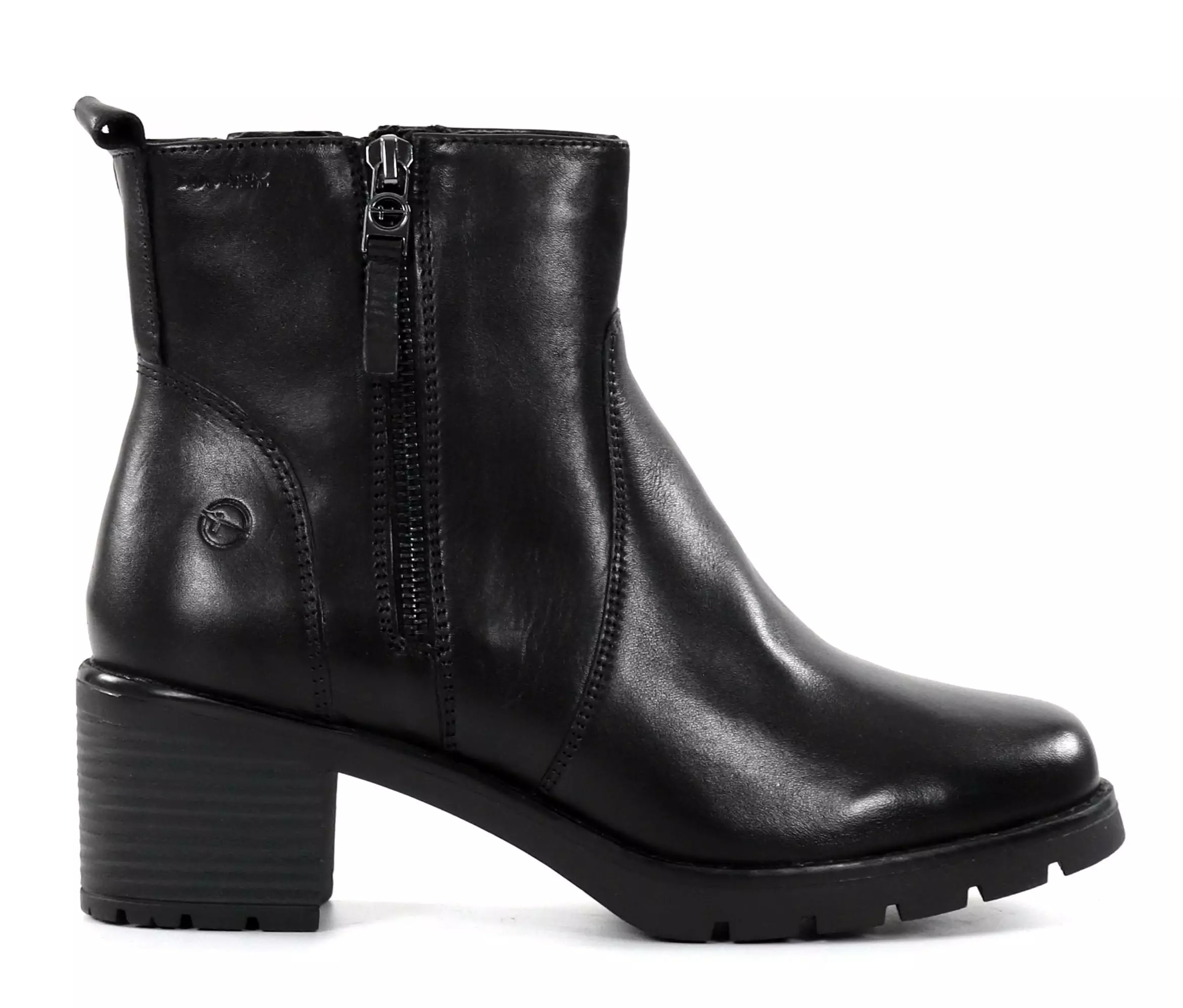 Nahkanilkkurit vedenpitävällä DUOtex-kalvolla ja lämpimällä teddyvuorella. Kengissä on jalalle miellyttävät, matalat tolppakorot.
