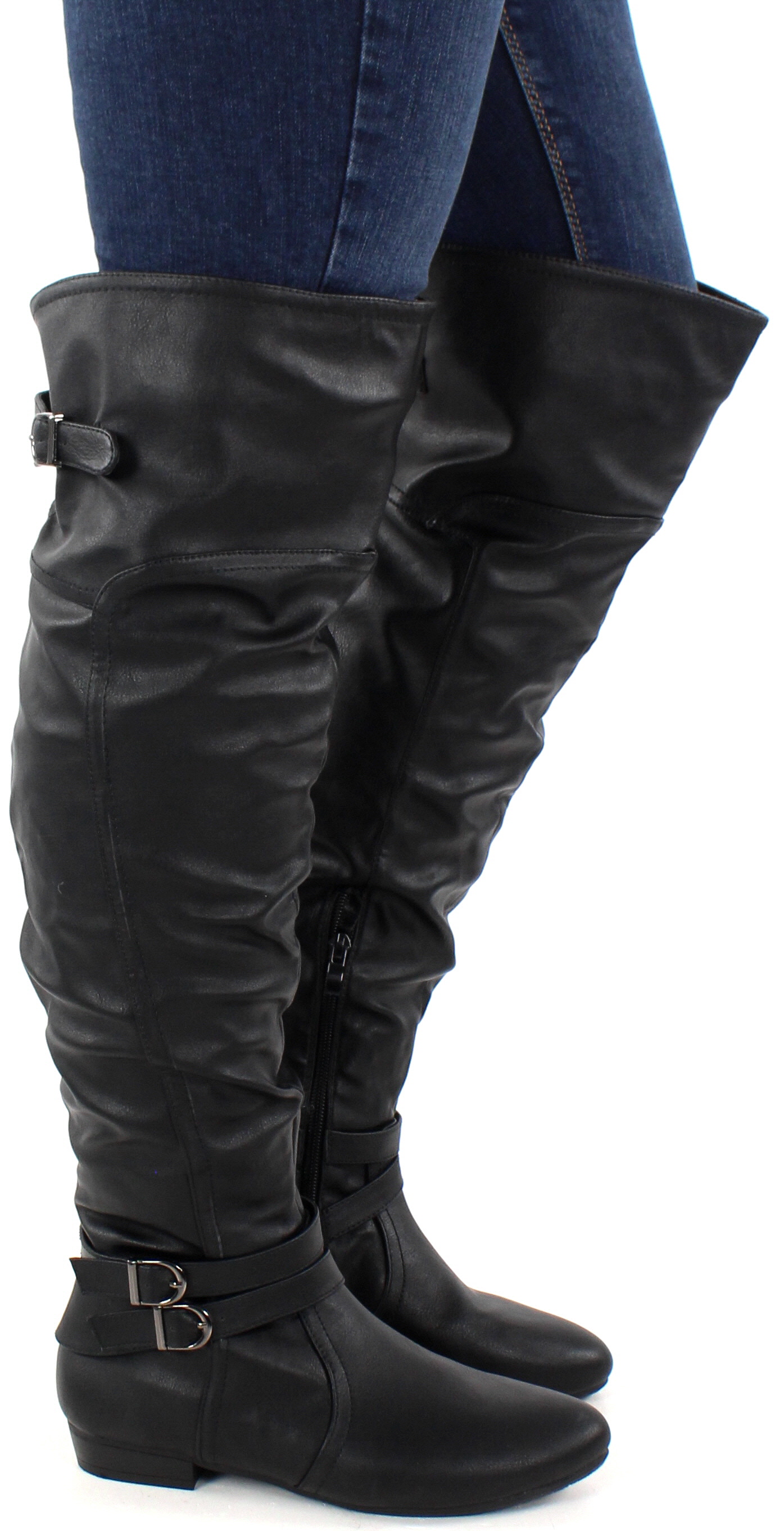 Keinomateriaaliset ylipolvensaappaat solkikoristeilla.