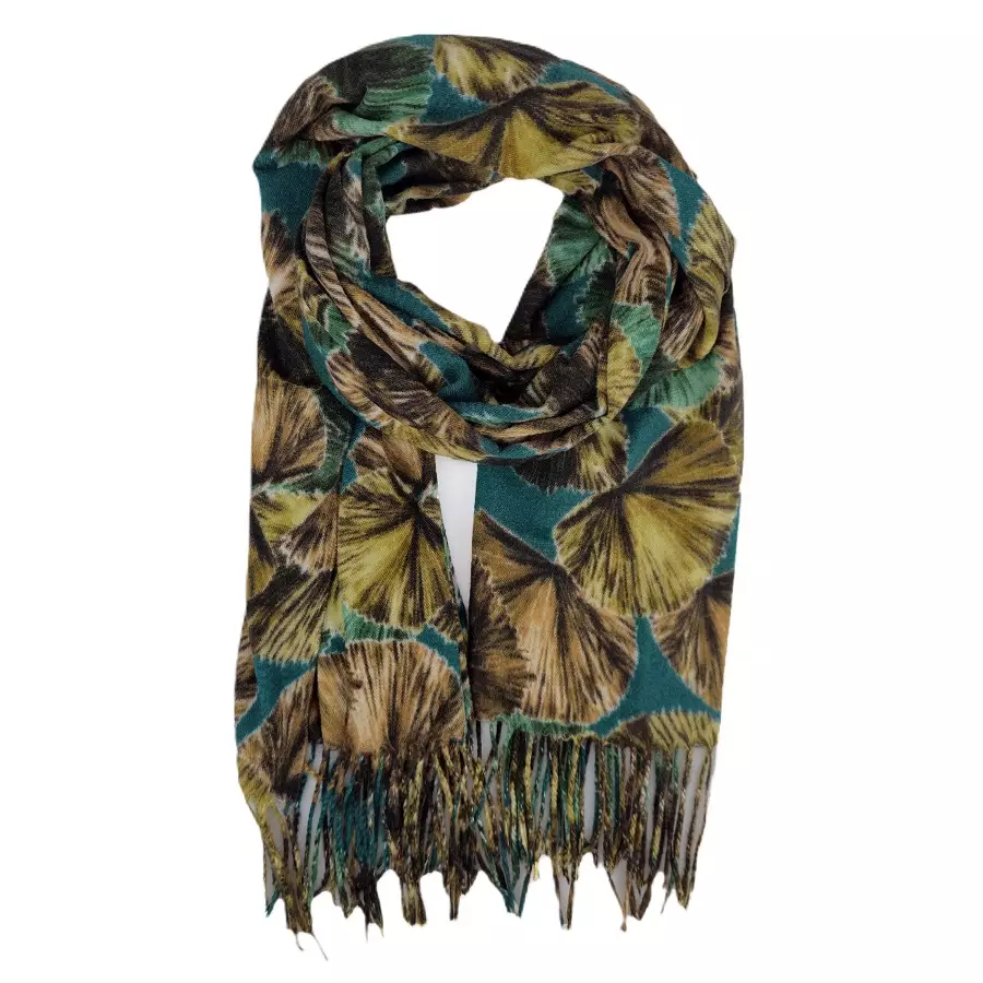 Pehmeä kukkakuviollinen huivi hapsuilla.