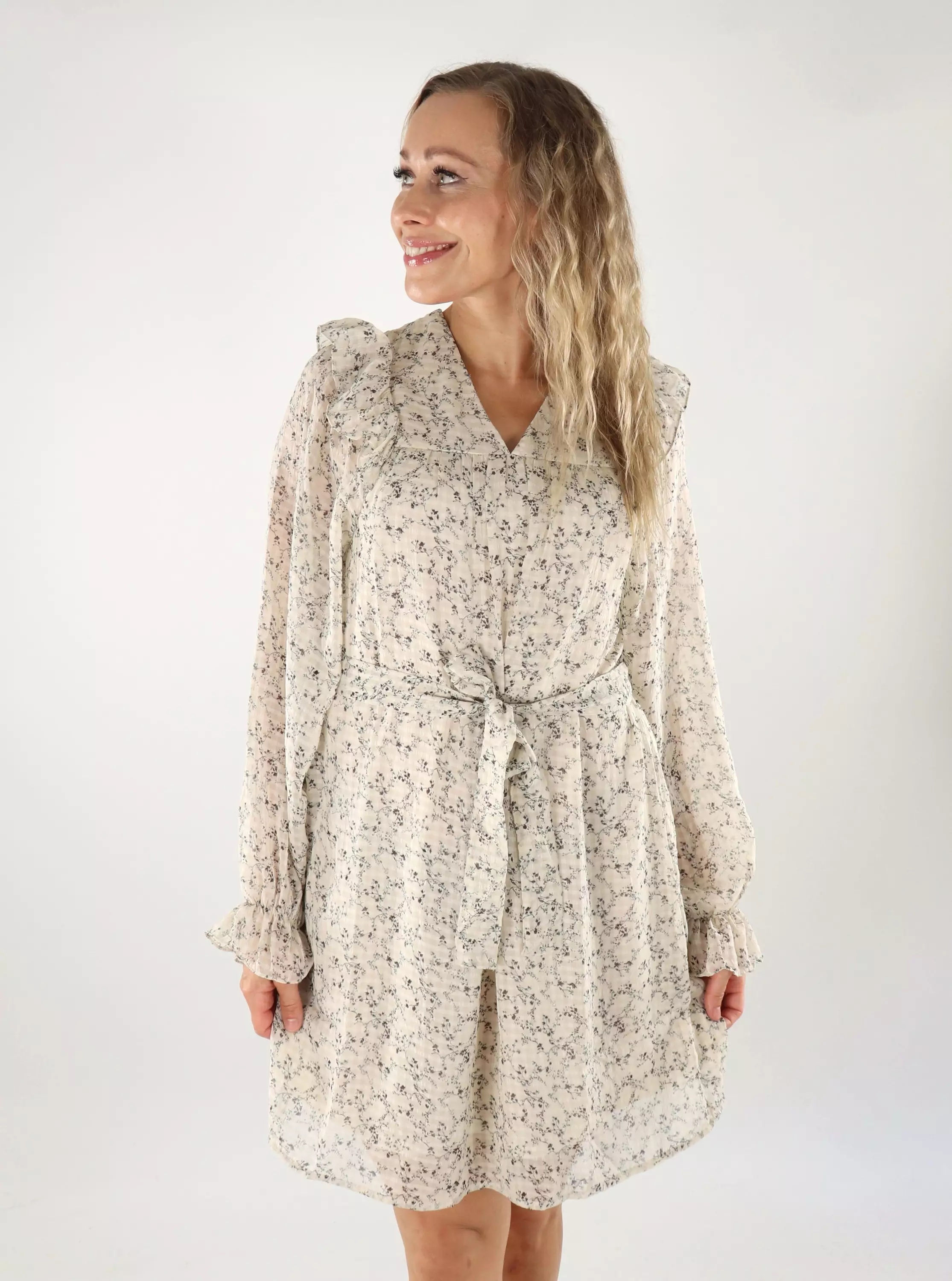 Vero Moda A-linjainen mekko Petra Short beige/kukkakuosi