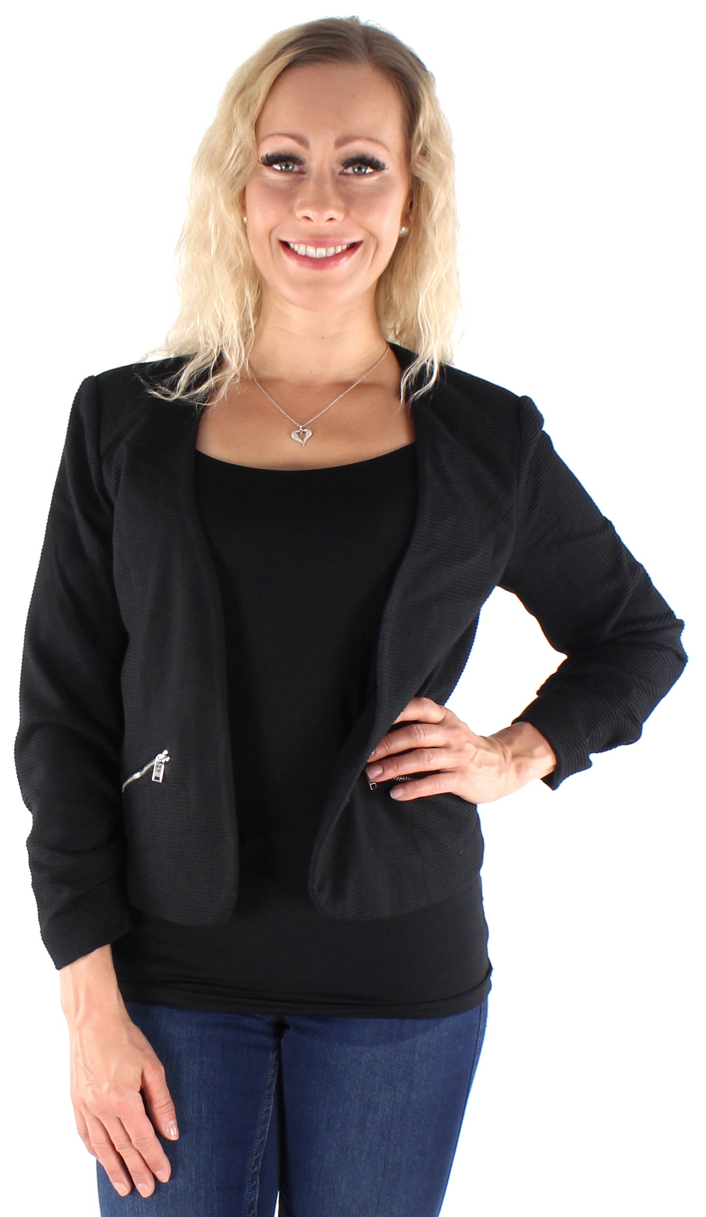 Avonainen bleiseri kahdessa värissä ja pienillä toppauksilla.