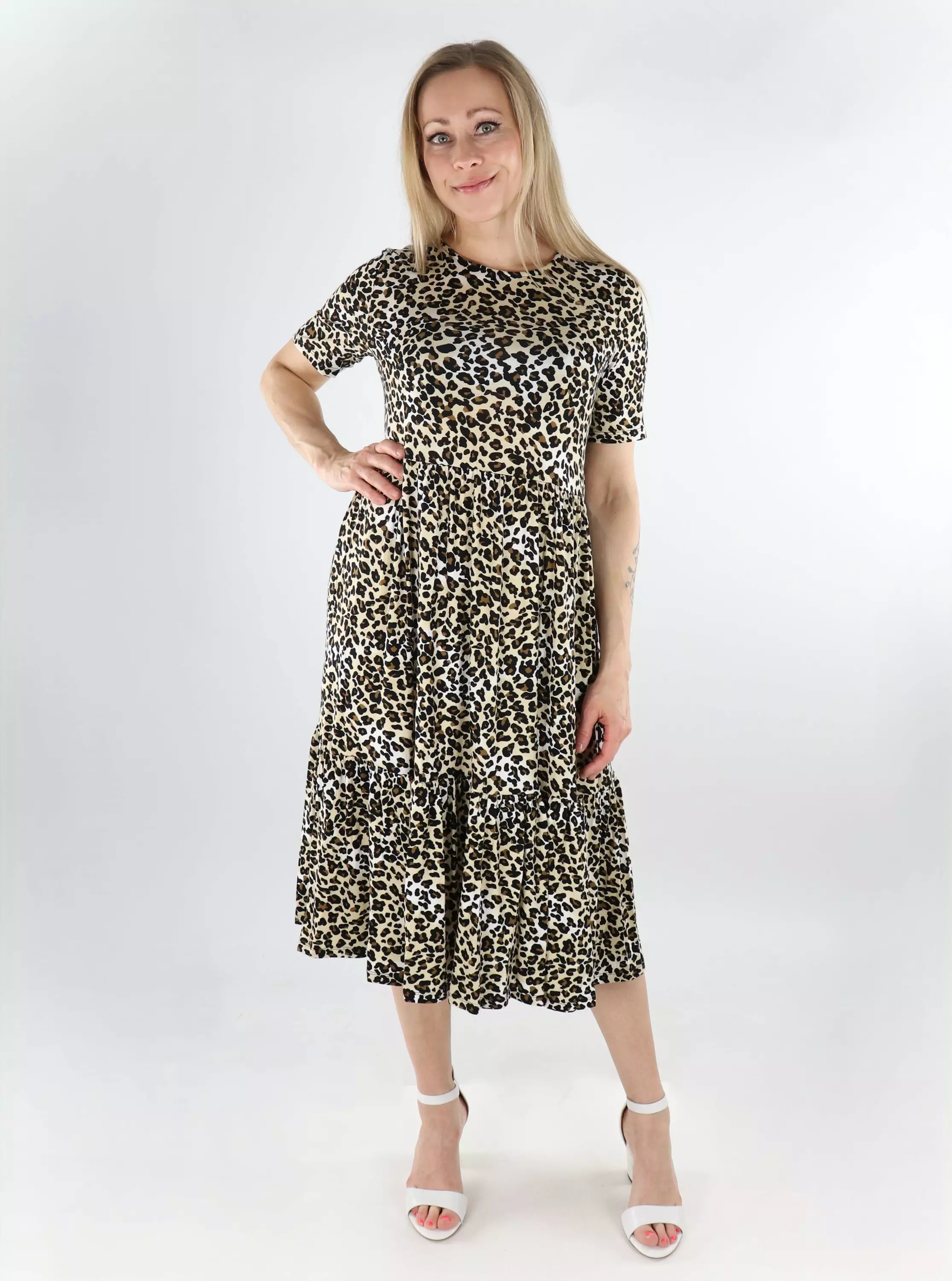 Vero Moda kuviollinen mekko Mitsi O-Neck Calf valkoinen/leopardikuosi