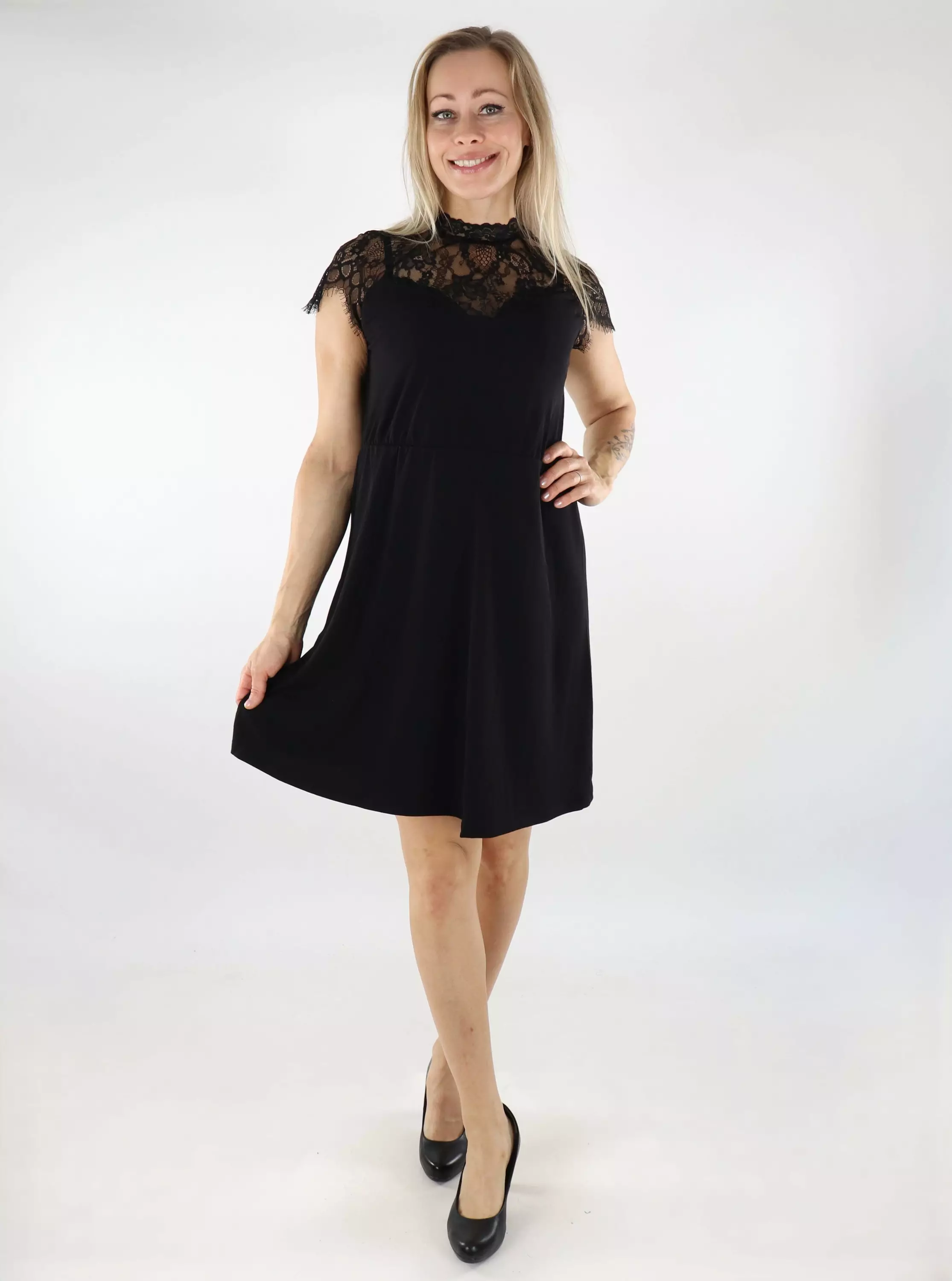 Joustava mekko, jossa kaunis pitsinen pääntie.