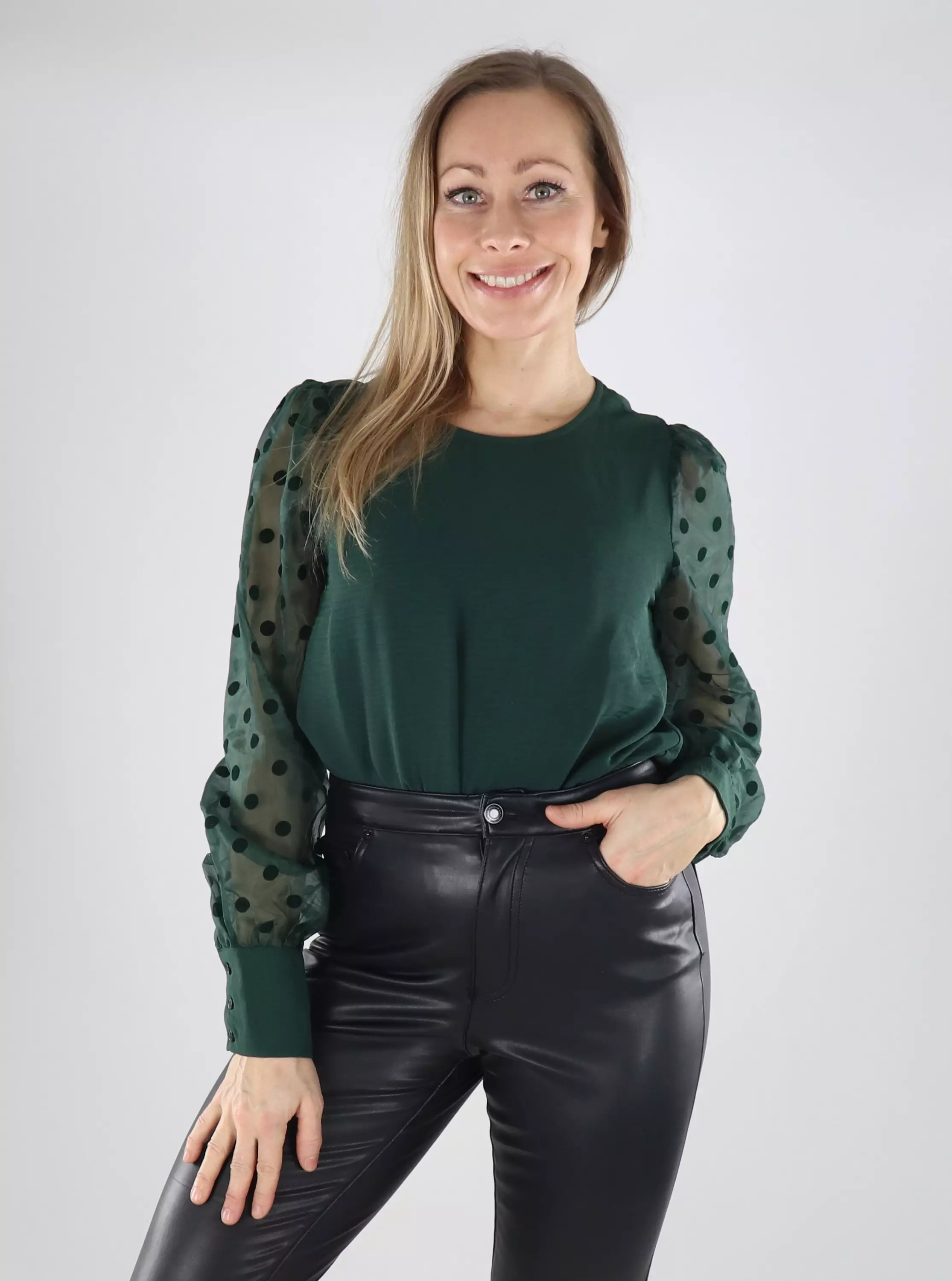 Vero Modan paita pilkkukuosisilla hihoilla on tyylikäs valinta arkeen ja juhlaan! Kevyt, hieman joustava materiaali takaa miellyttävän istuvuuden koko päiväksi.
