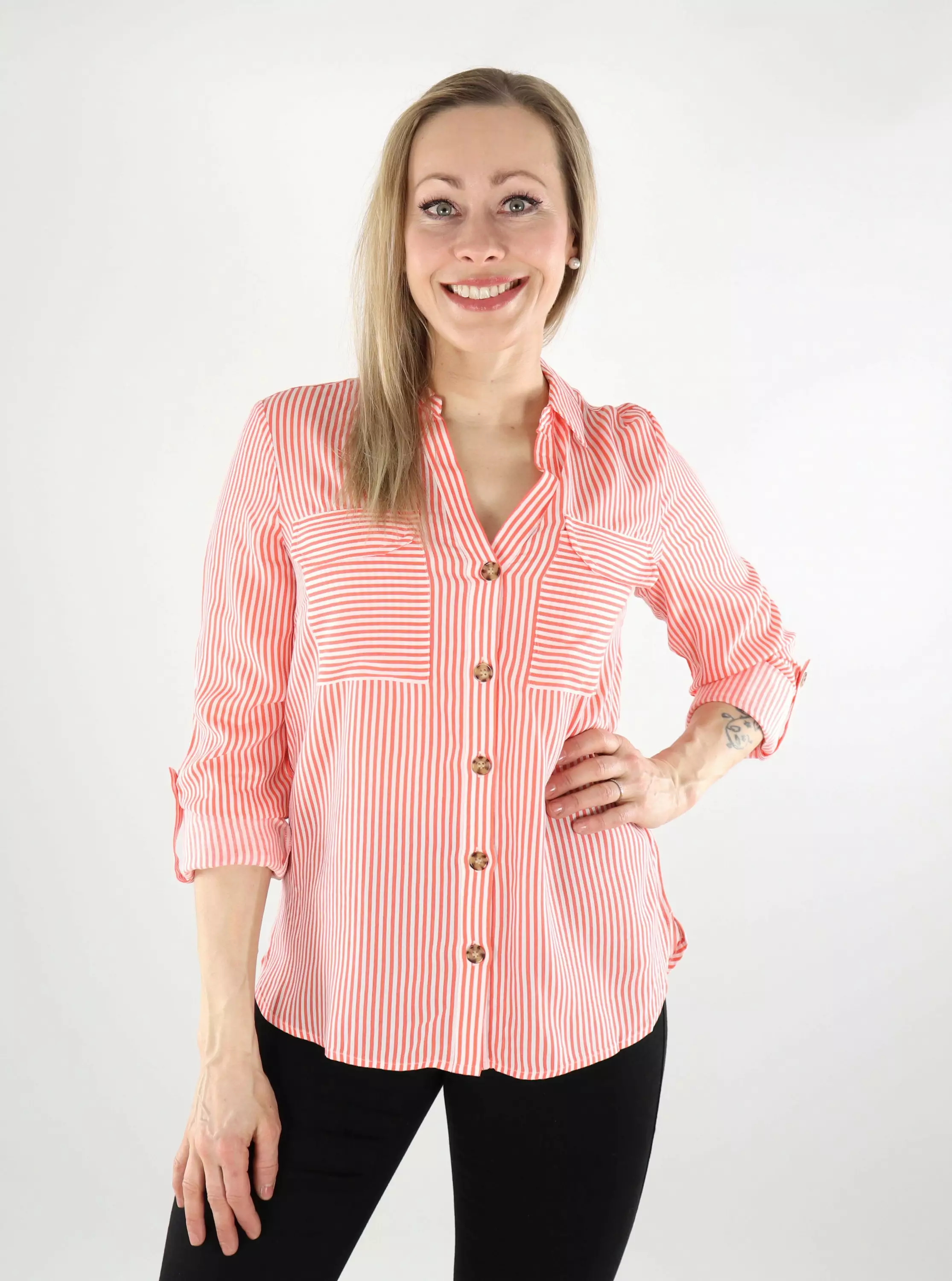 Vero Moda naisten raidallinen kauluspaita Bumpy Shirt koralli