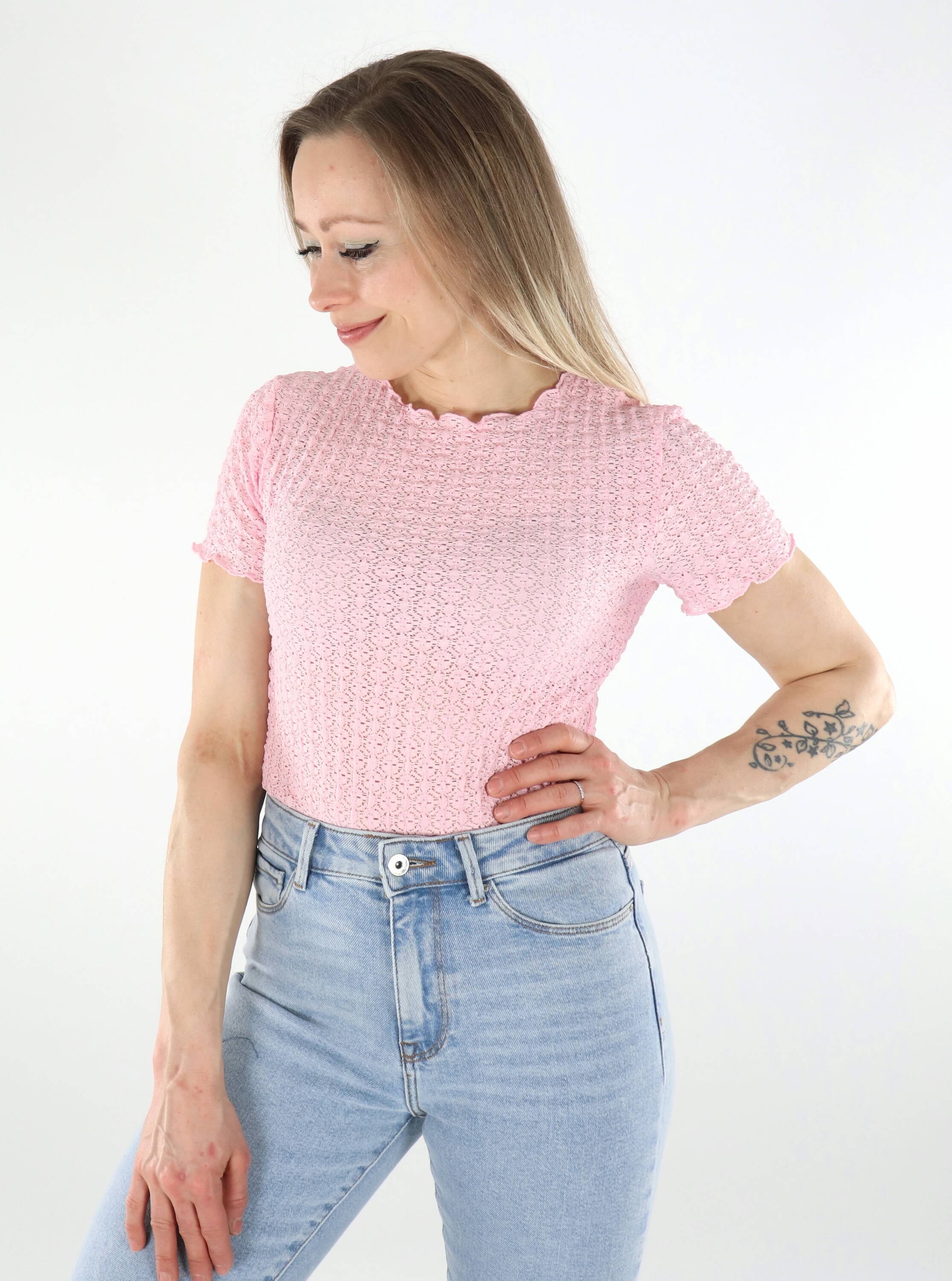 Kierrätyspolyesteristä valmistettu kaunis t-paita, jossa teksturoitu pinta.