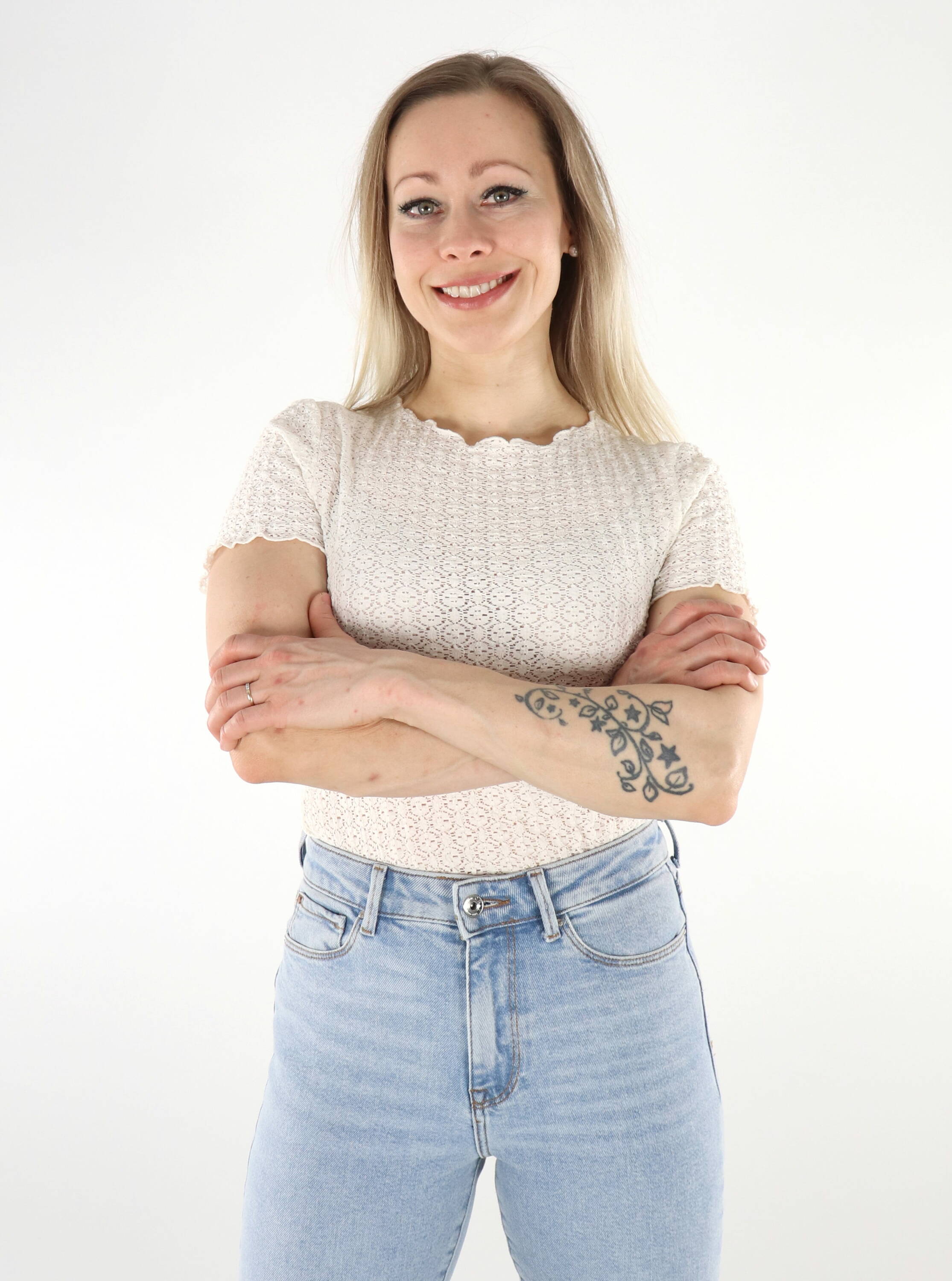 Kierrätyspolyesteristä valmistettu kaunis t-paita, jossa teksturoitu pinta.