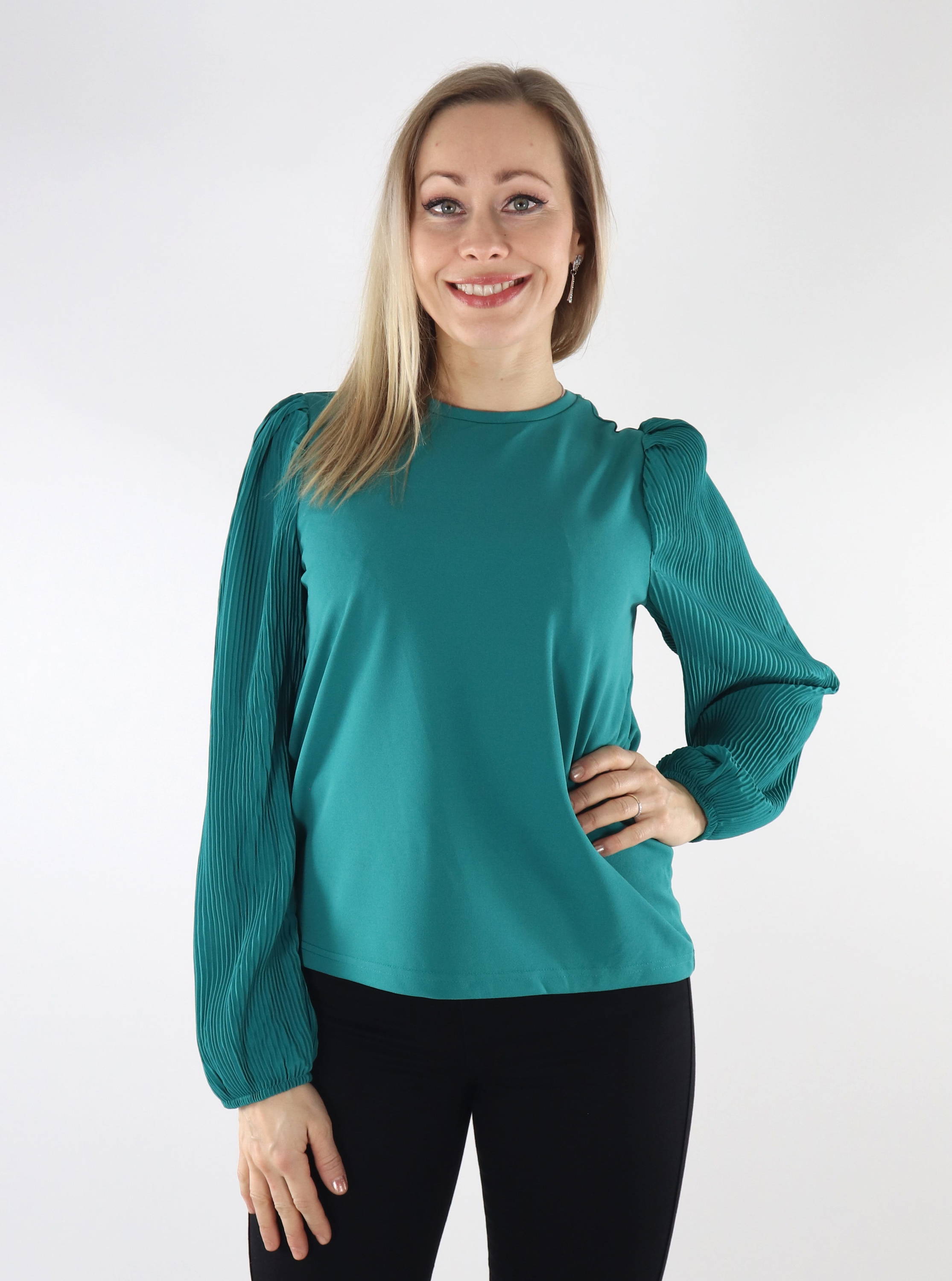 Miellyttävästä materiaalista valmistettu paita, jossa upeat pliseeratut hihat.