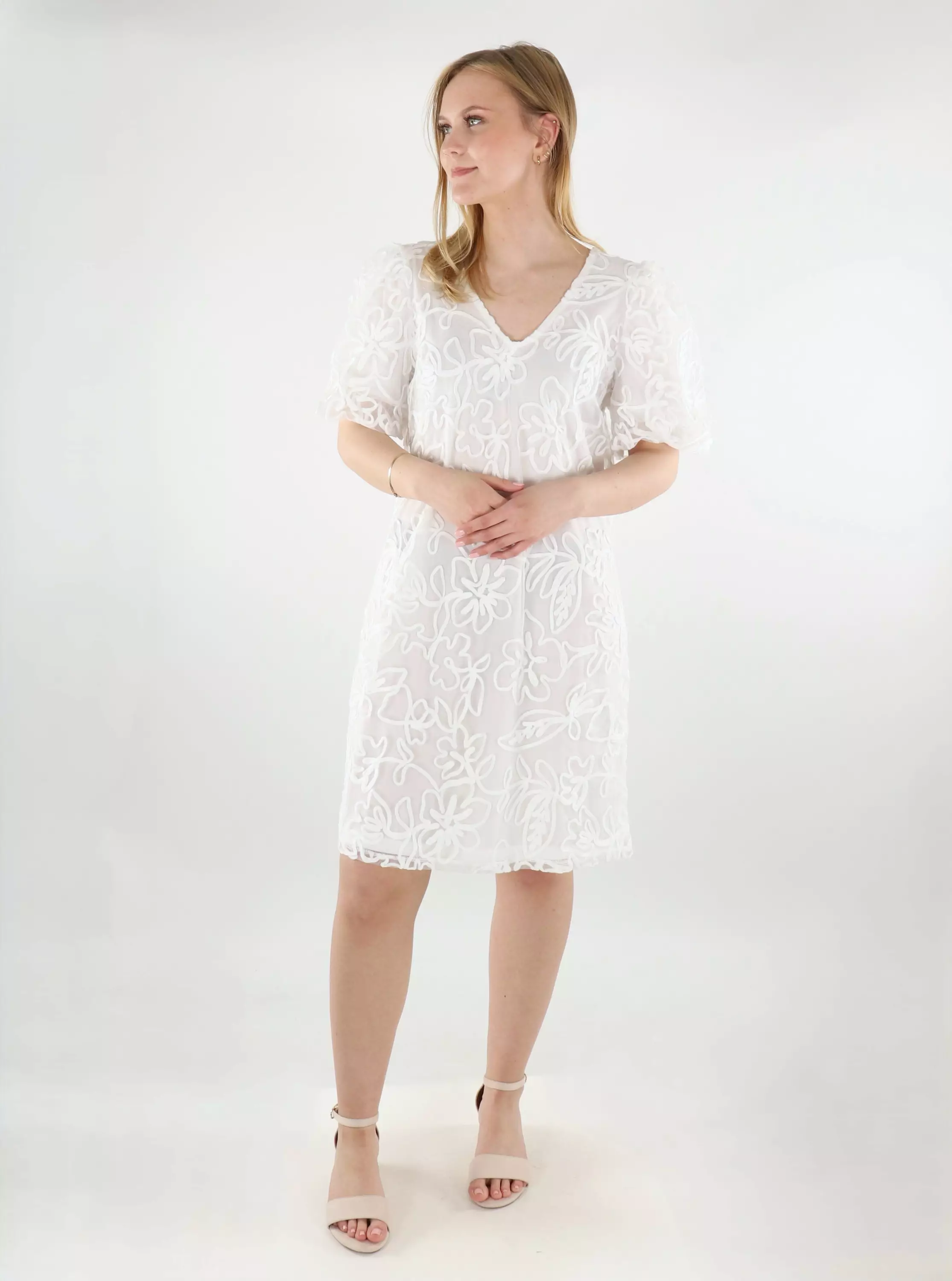 Tunne olosi samaan aikaan mukavaksi ja säteilevän tyylikkääksi Vilan Flower-mekossa! Mekko on rennon mallinen, ja siinä on kauniit kukkakirjailut.