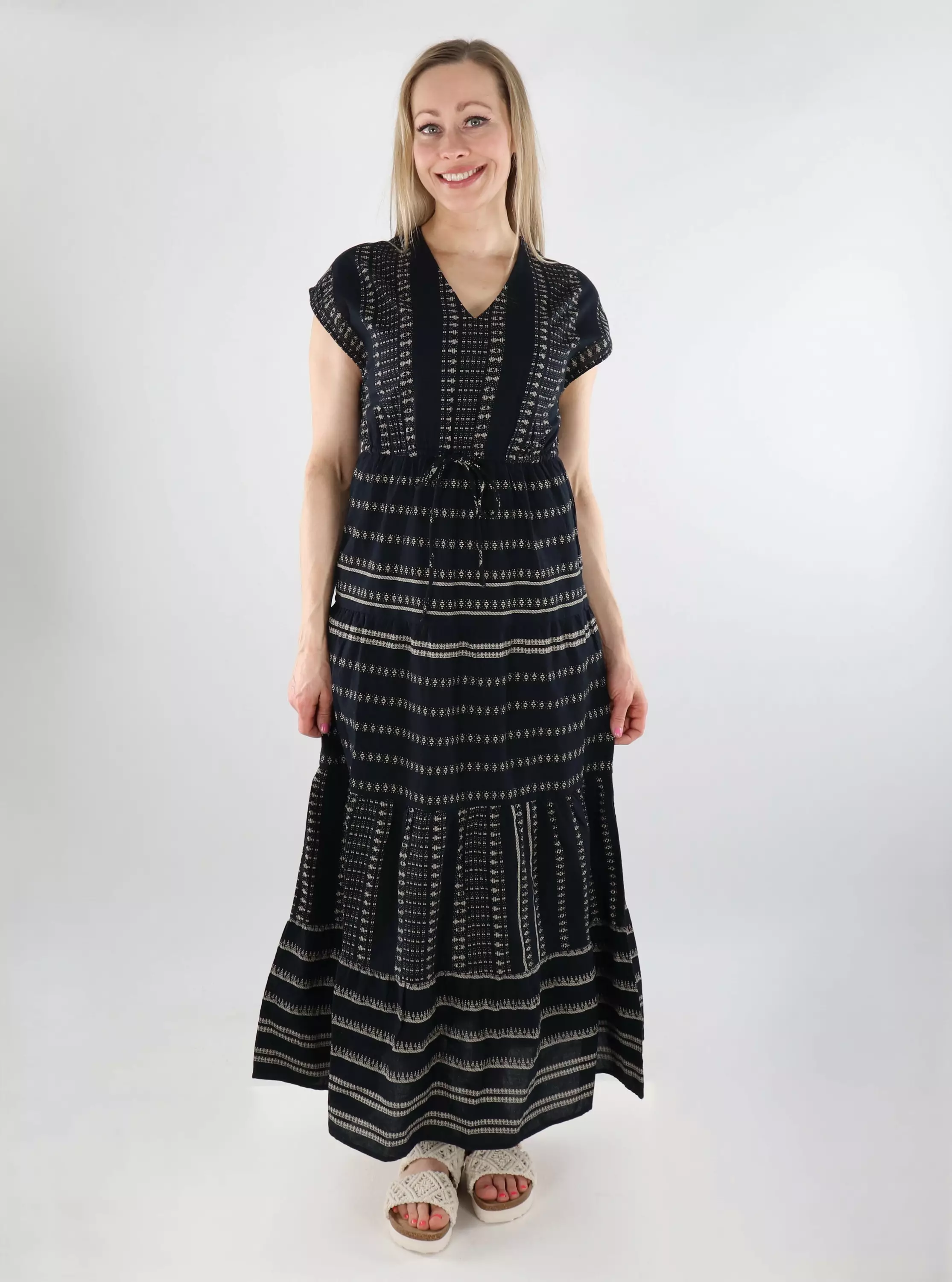 Vila luomupuuvillainen maximekko Savila V-Neck musta/beige