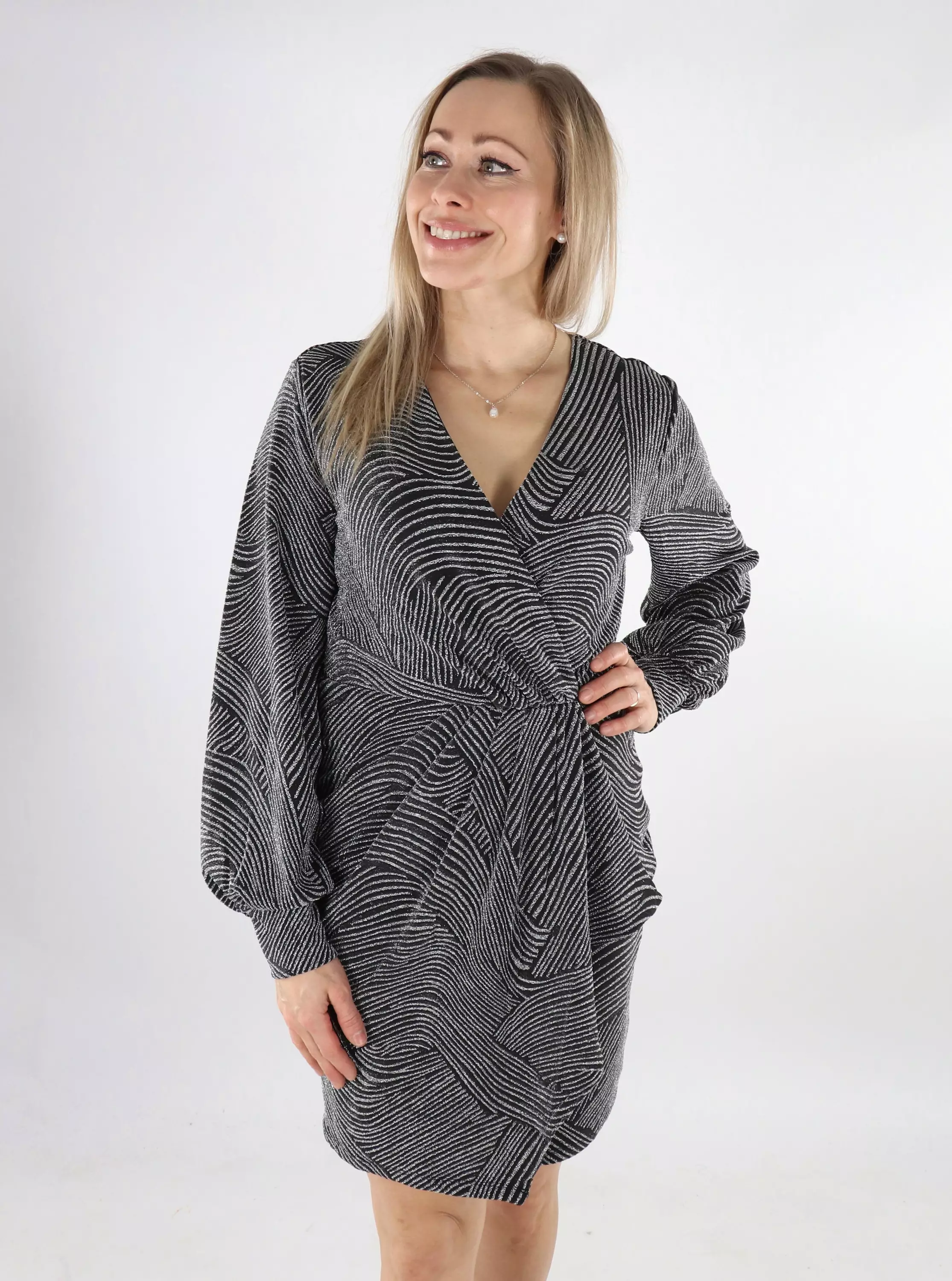 Katseet kääntävä kietaisumallinen glitter-mekko, jossa mukavan joustava materiaali.