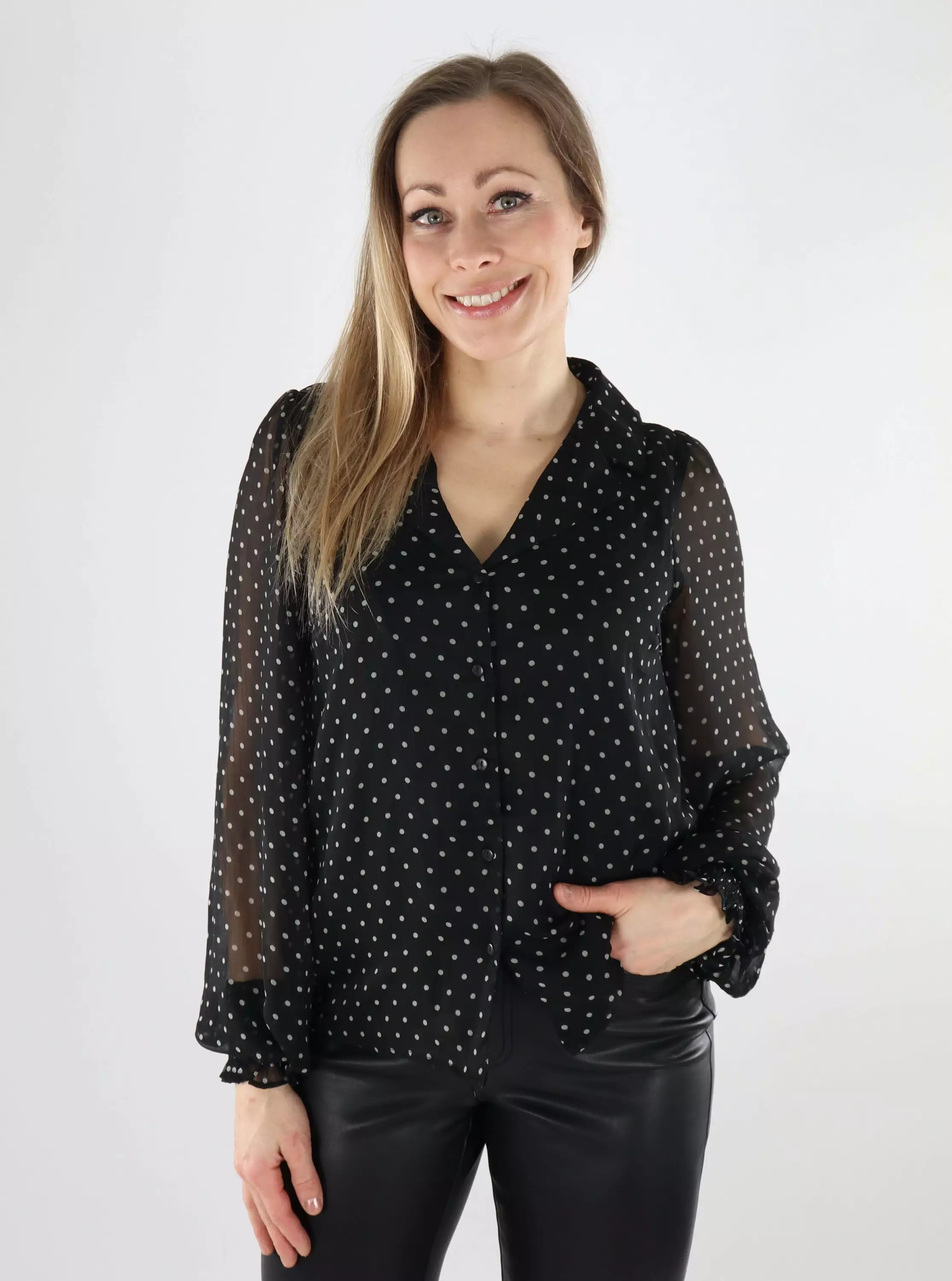 Vila naisten kauluspaita VICARLA Shirt black/white dots