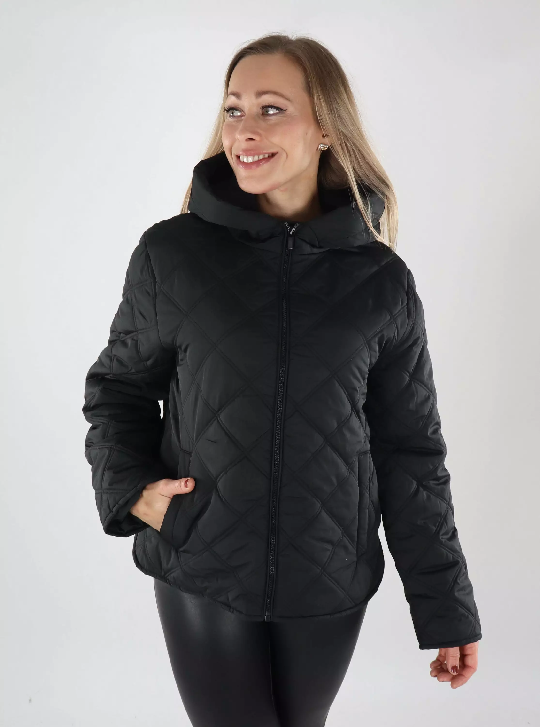 Vilan kaunis tikkikuvioitu kevyttoppatakki, jossa kiinteä huppu ja pyöristetty helma.