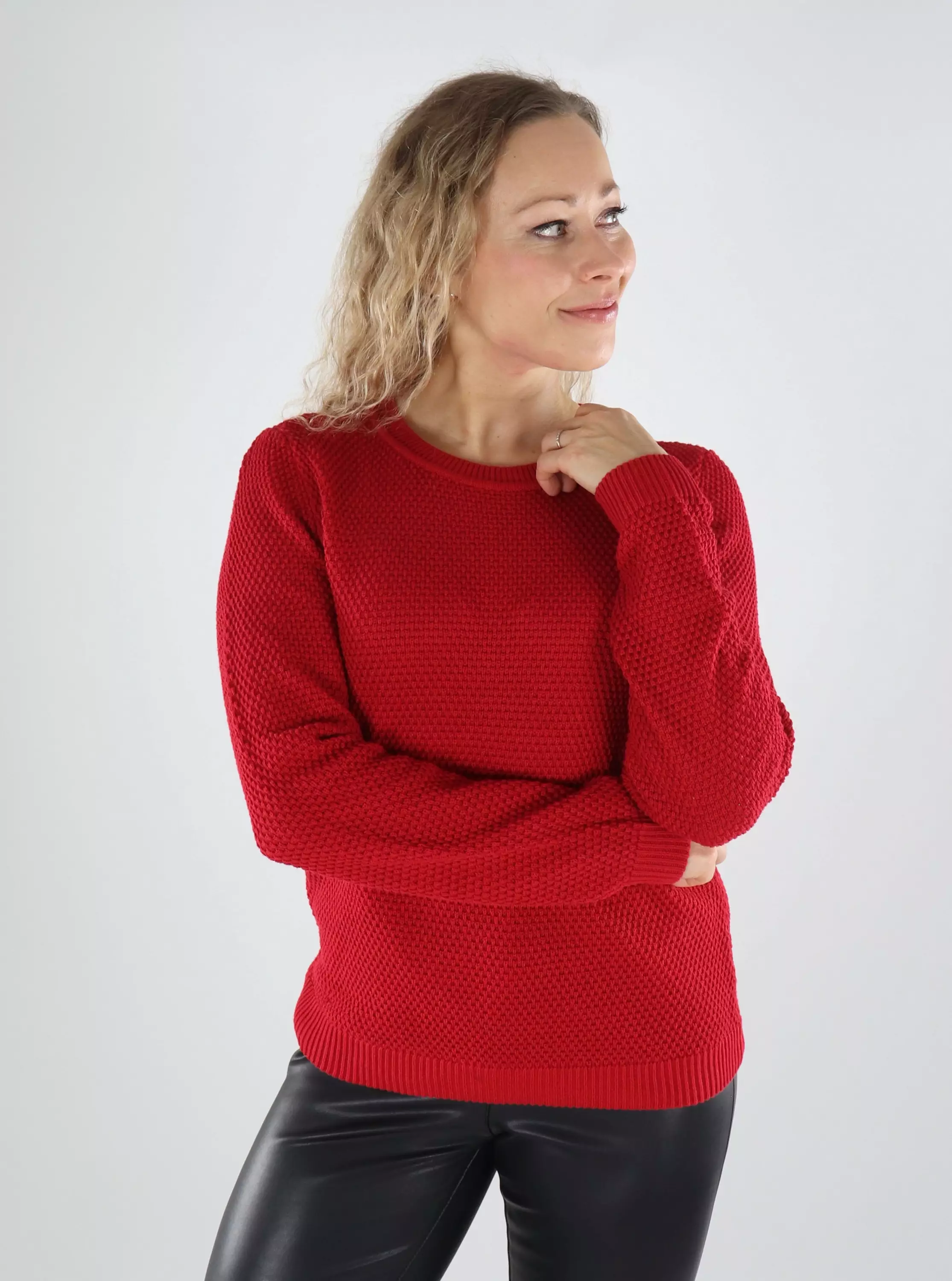 Pehmeä ja hengittävä neule 100 % luomupuuvillaa – vastuullisuutta ja mukavuutta samassa paketissa! Punainen sävy tuo piristystä arjen pukeutumiseen.