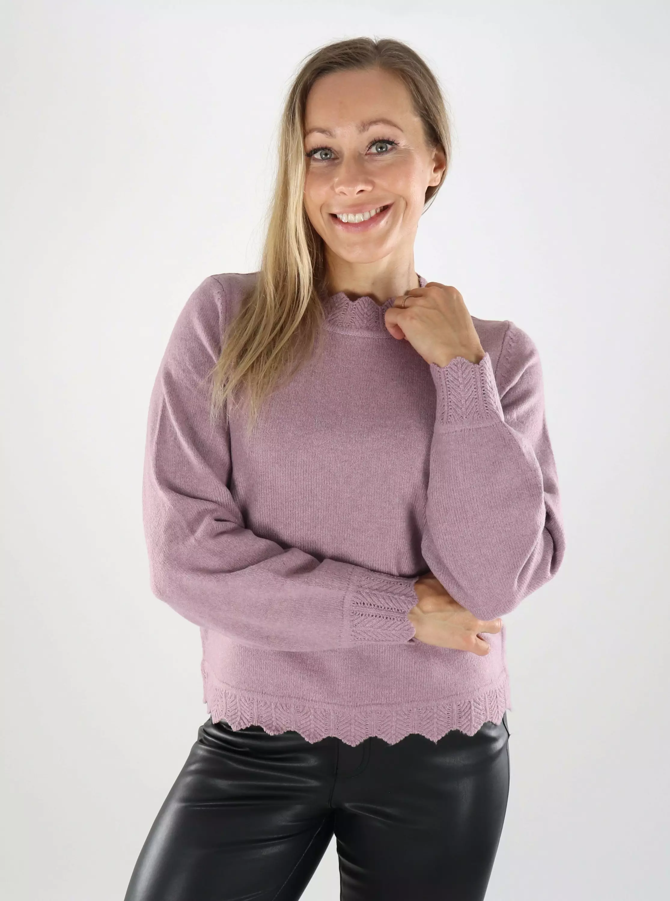 Pehmeä ja tyylikäs neule, jossa katseenvangitsijana toimivat upeat kuvioneulotut resorit. Hillityn näyttävä valinta arkeen tai toimistoon!
