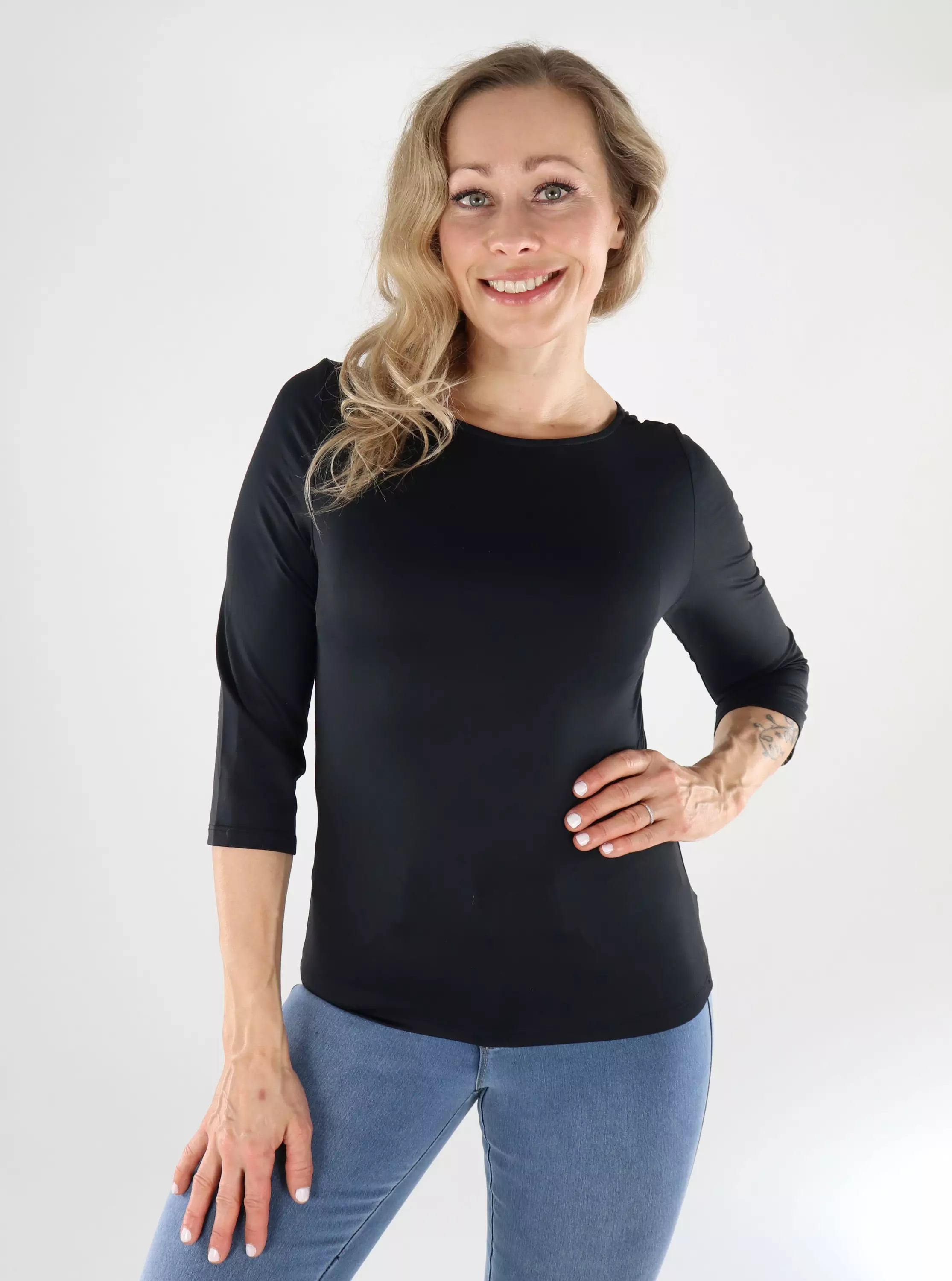 Klassinen musta paita venepääntiellä ja 2/4-pituisilla hihoilla. Vaatekaapin ehdoton kulmakivi, joka sopii jokaiseen alaosaan yhdistettäväksi!