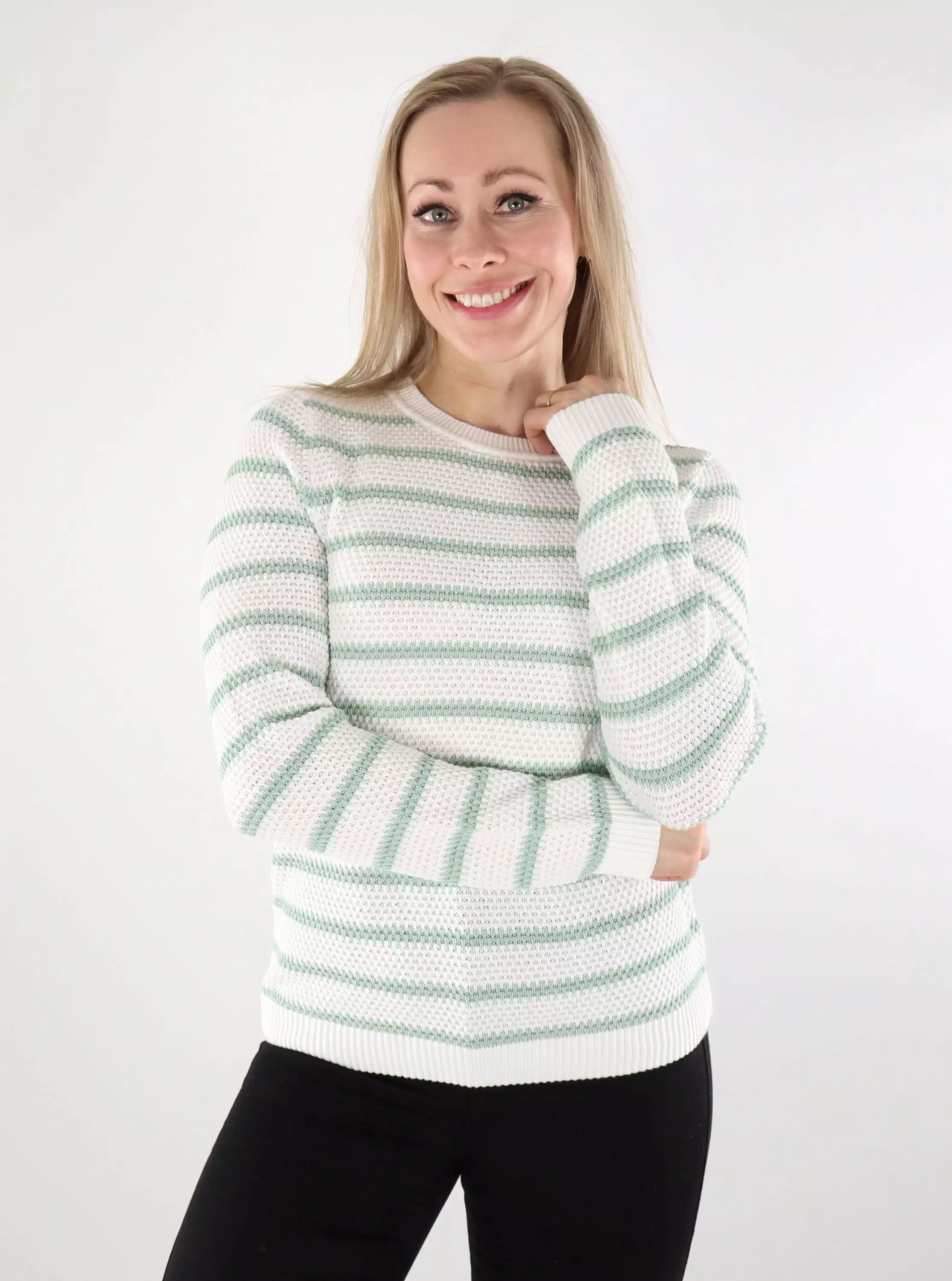 Vila naisten raidallinen neule Dalo Stripe valkoinen / vihreä