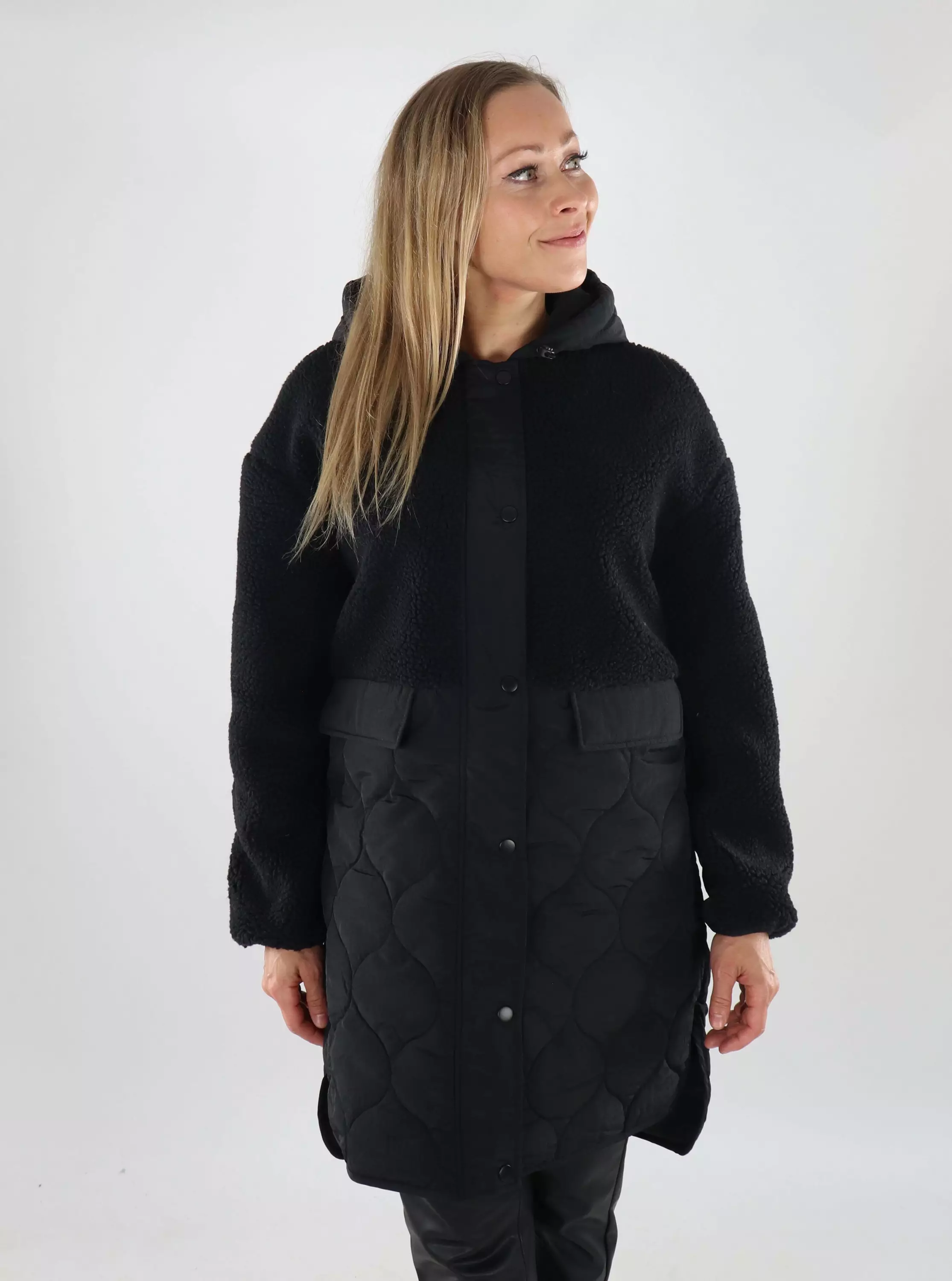 Tämä rento takki yhdistää pehmeän teddy-yläosan ja tyylikkään tikkikuvioidun alaosan. Mukava istuvuus ja näyttävä design tekevät siitä täydellisen valinnan siistiin arkipukeutumiseen.
