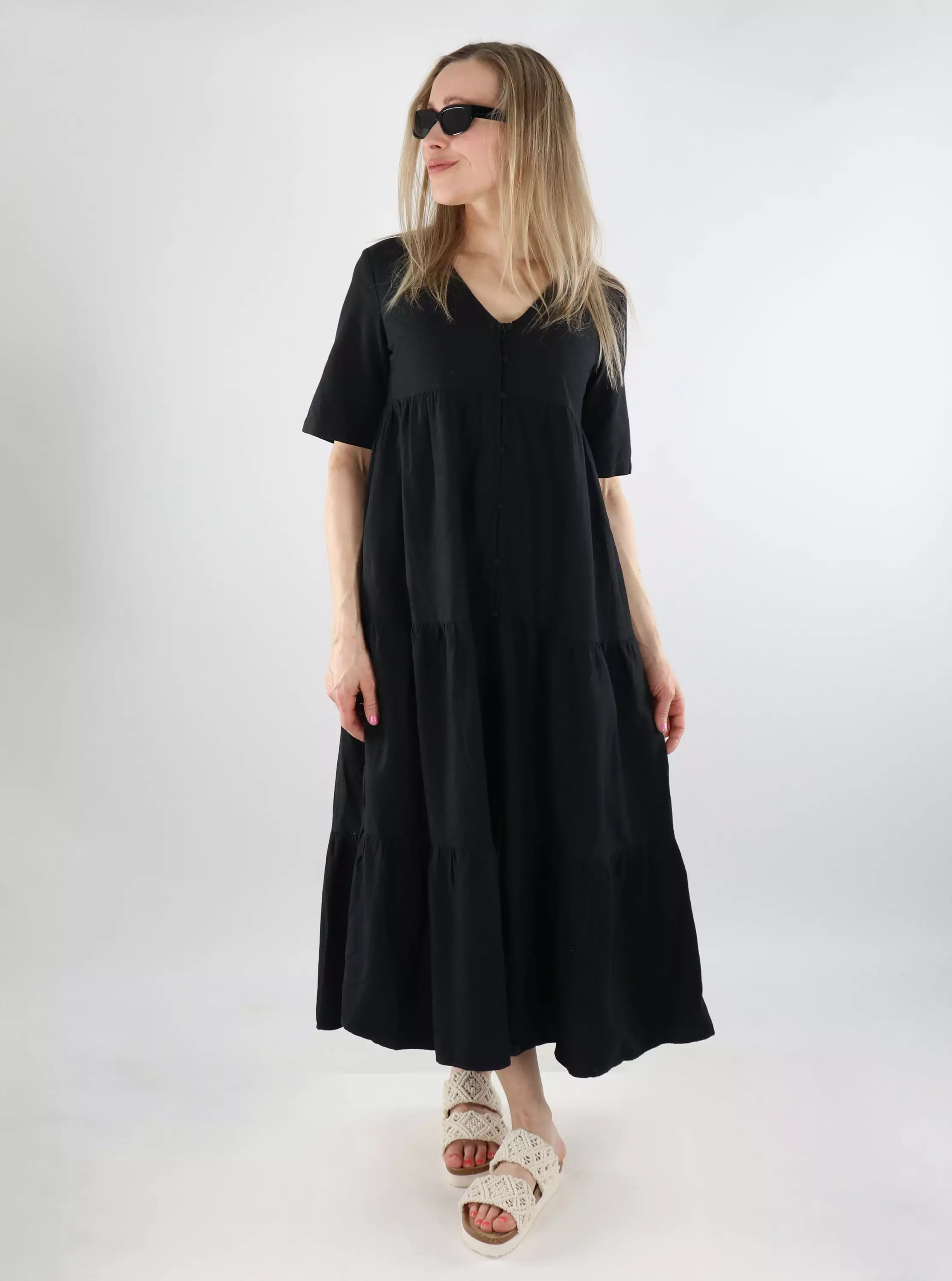 Rennon mallinen mekko, jossa kaunis nappilista edessä. Valmistettu pehmeästä ja hengittävästä pellavasekoitteesta. Täydellinen valinta niin arkeen kuin juhlaan!