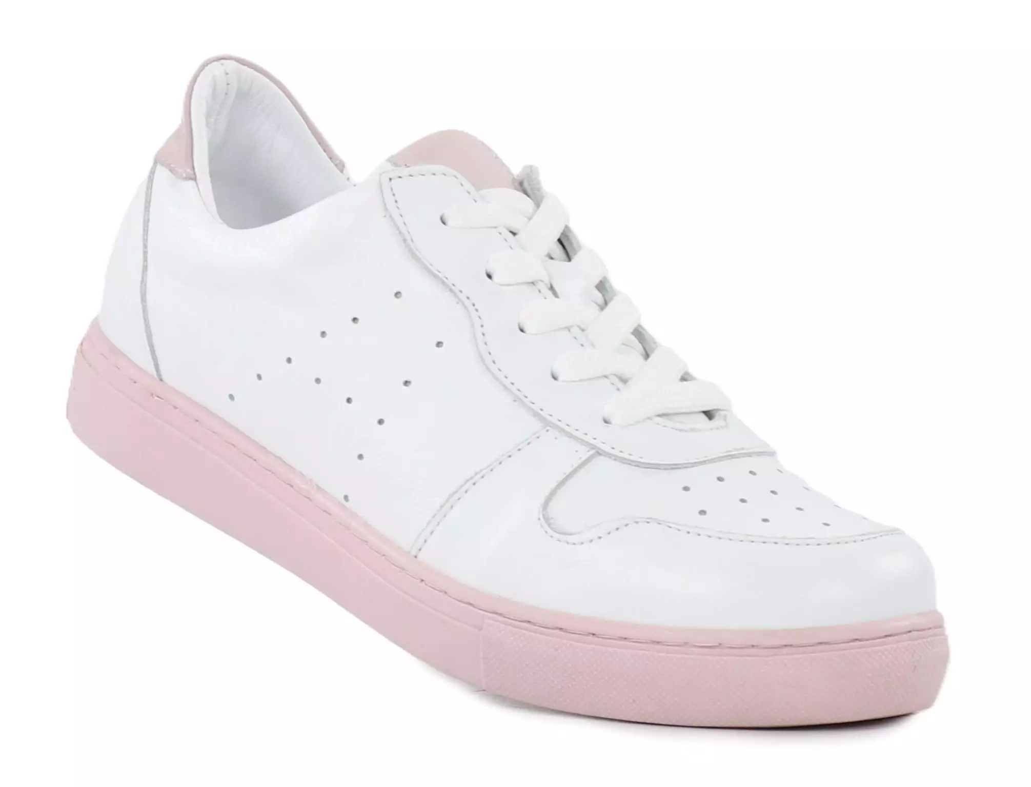 Snygga Andrea Conti-sneakers tillverkade av äkta läder med fräscha rosa detaljer. Uttagbara, vadderade läderinlägg gör skorna särskilt bekväma för användning hela dagen.