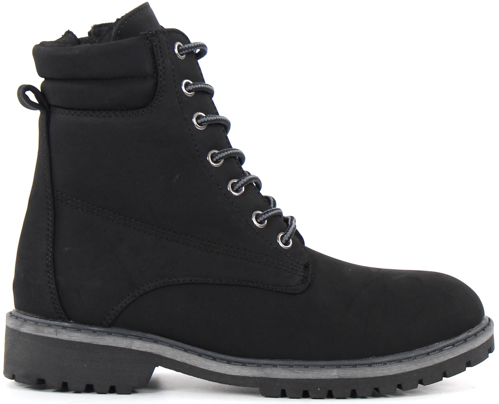 Svarta kängor med dragkedja på insidan av skaftet.