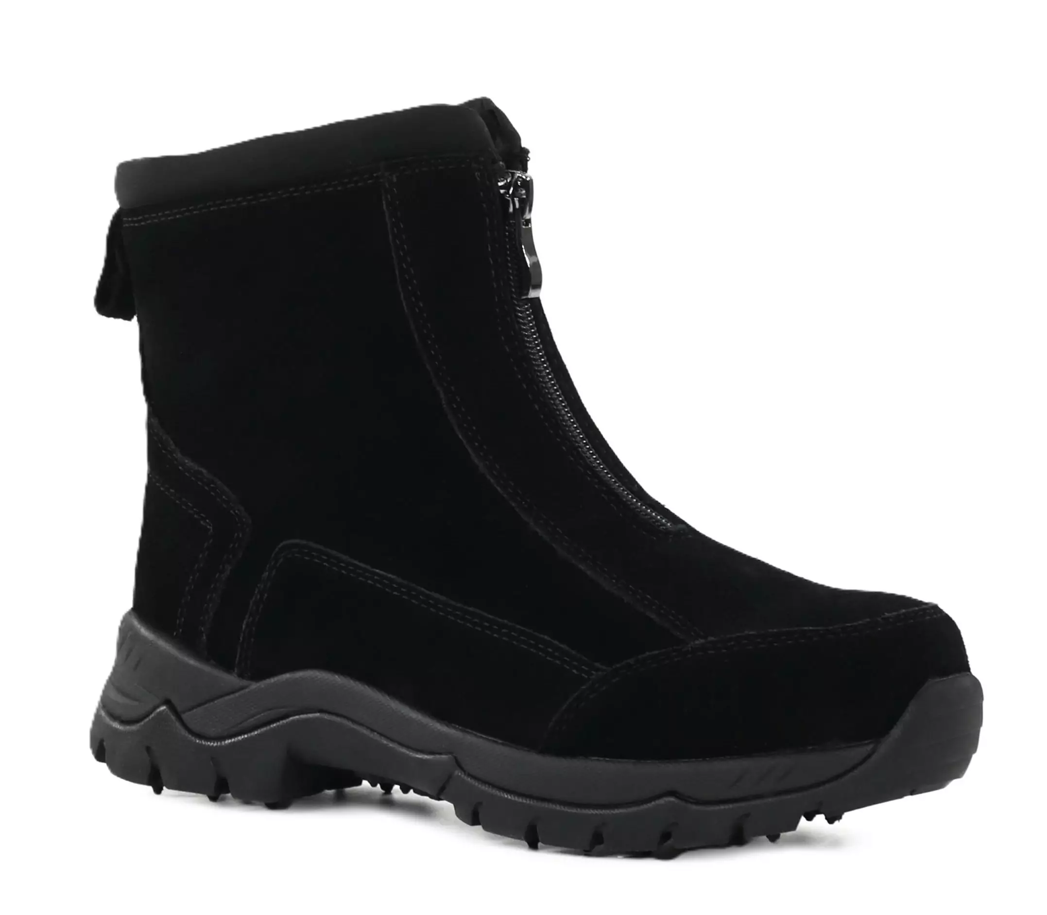 Varma ankelboots i mocka med dubbar ger perfekt komfort och grepp för vinterdagar. Det mjuka fodret och innersulan i fuskpäls håller dig varm i kallt väder, medan den dubbade gummisulan säkerställer ett fast steg även på hala ytor. Ett snyggt och praktiskt val för vinterns växlande förhållanden.