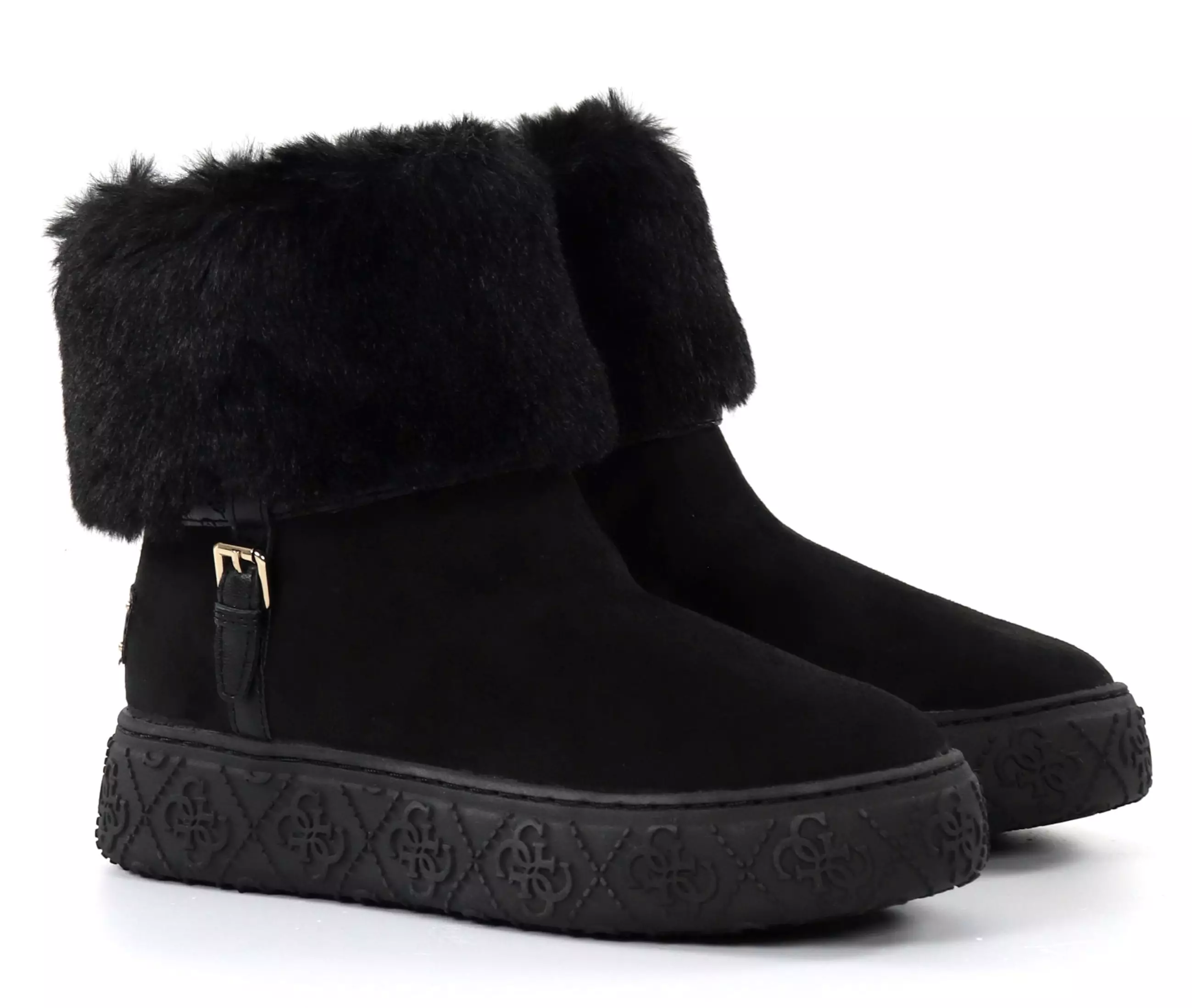 Snygga Guess ankelboots med konstgjord pälskant, varmt foder och snygga gyllene detaljer.