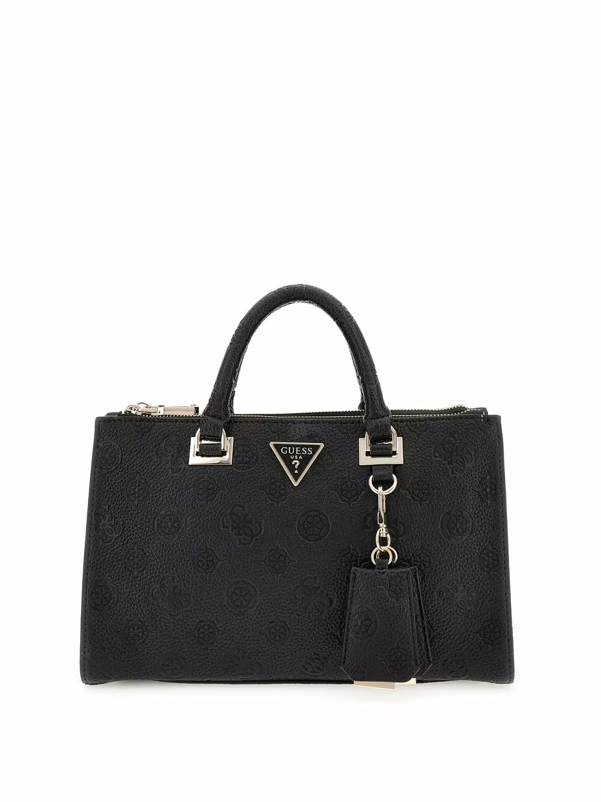 En svart präglad Guess-väska, tack vare flera olika fickor förblir dina saker snyggt organiserade!