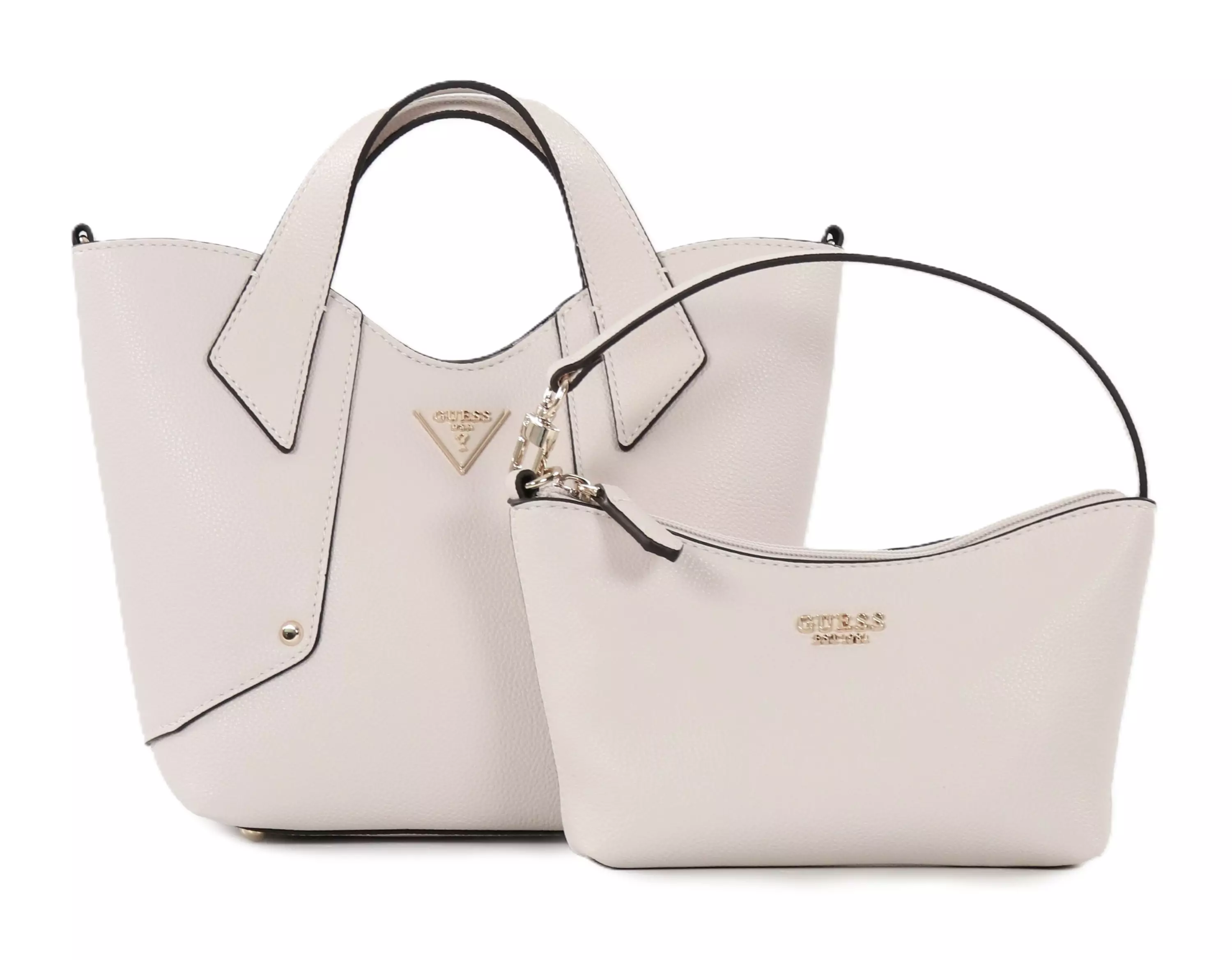 En snygg Guess-väska med en separat liten väska inuti. Du kan använda den inuti en större väska för att hålla ordning eller som en snygg liten väska på egen hand. En mångsidig lösning för vardagslivet och kvällsutflykter!