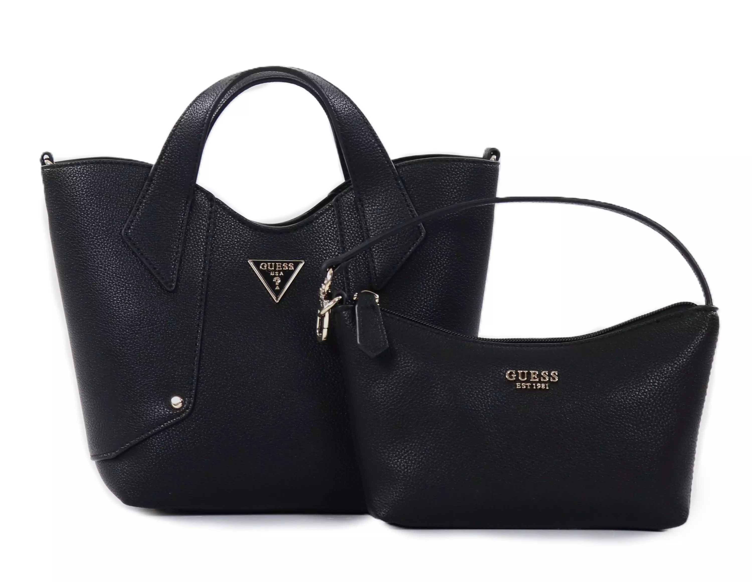 En snygg Guess-väska med en separat liten väska inuti. Du kan använda den inuti en större väska för att hålla ordning eller som en snygg liten väska på egen hand. En mångsidig lösning för vardagslivet och kvällsutflykter!