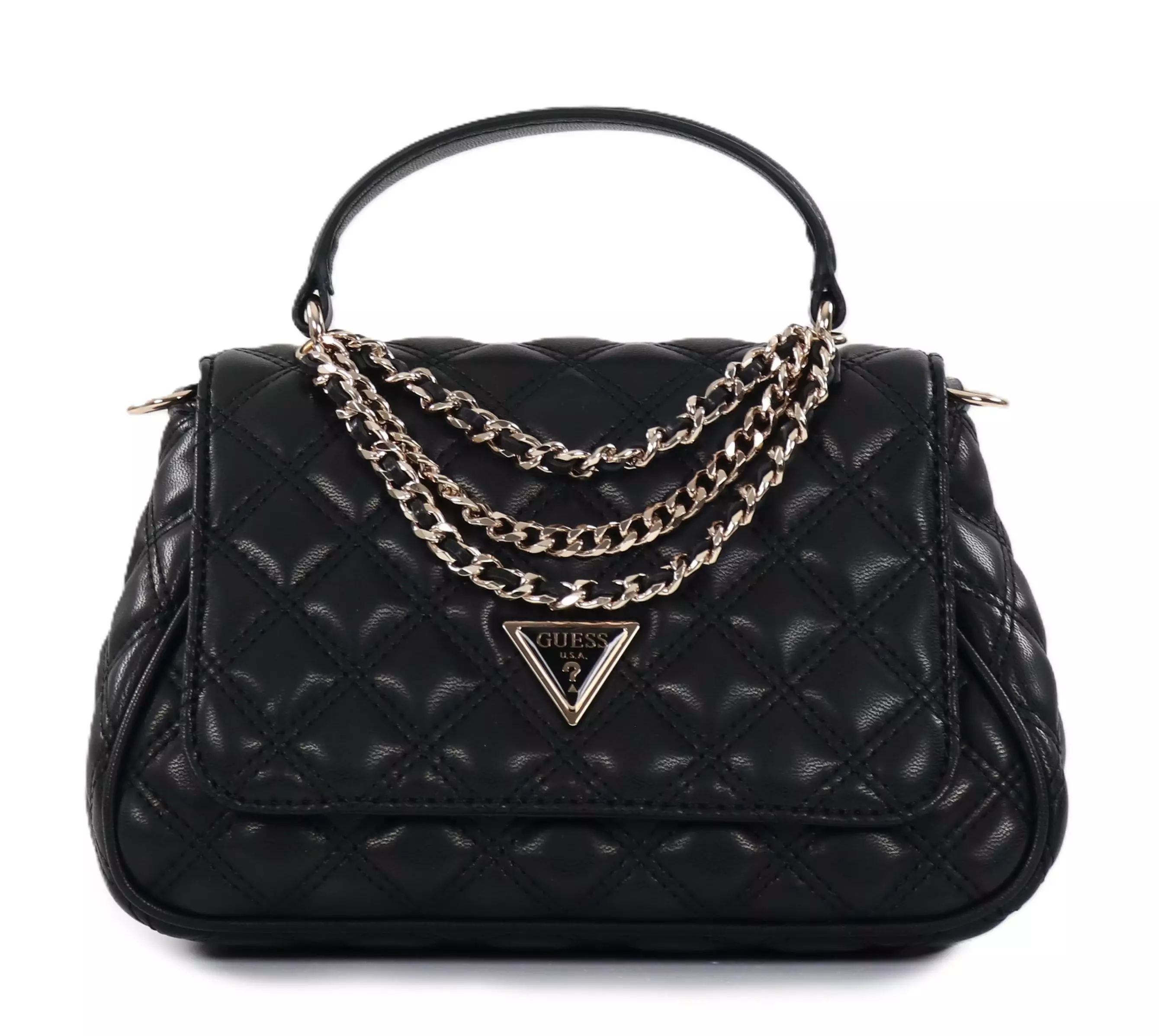 Guess Giully II-väska kompletterar din outfit med sin eleganta look! Guldfärgade detaljer ger en touch av lyx, och den justerbara axelremmen med en guldkedja kombinerar praktiskhet och elegans.