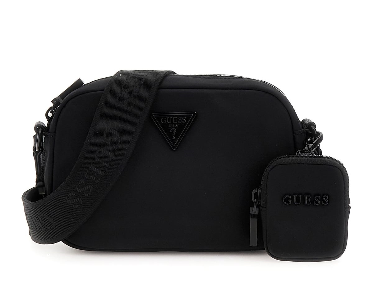 Snygg solid svart Guess-väska, inklusive en handväska.
