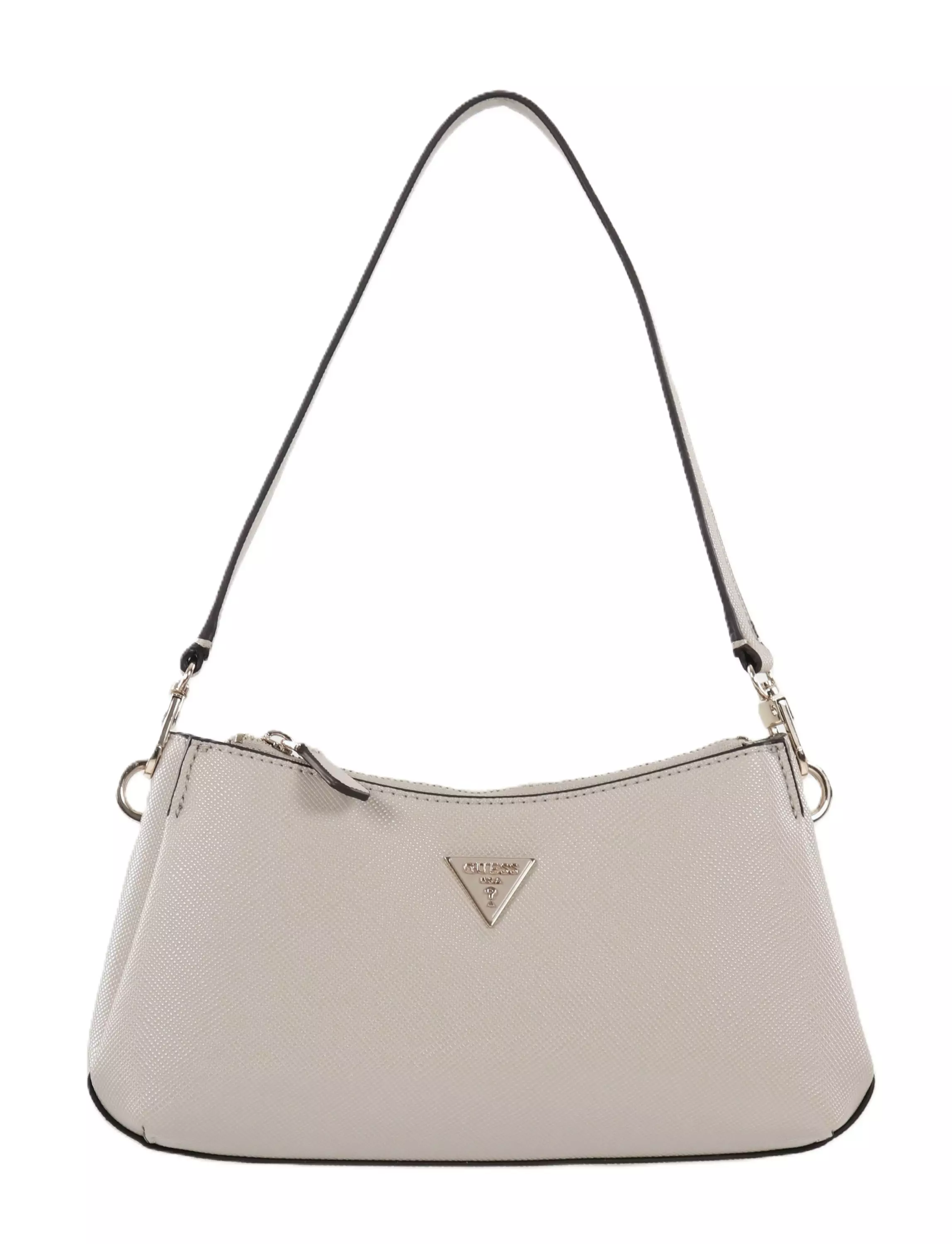 En snygg Guess-väska med två remmar i olika längder för mångsidig användning. Gulddetaljer kompletterar looken och ger en touch av lyx till outfiten.
