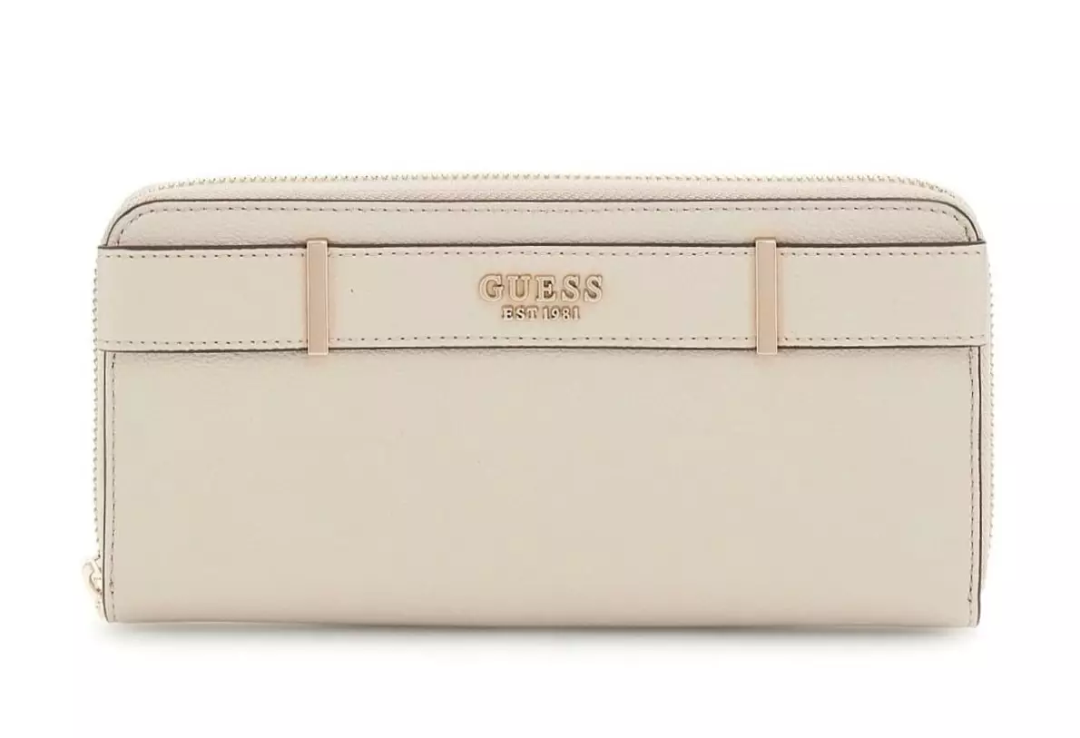 Snygg beige Guess plånbok med gulddetaljer och handledsrem.