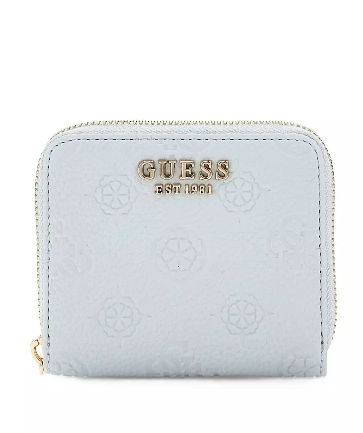 Präglad Guess-plånbok med separata fickor för kort, sedlar och mynt.