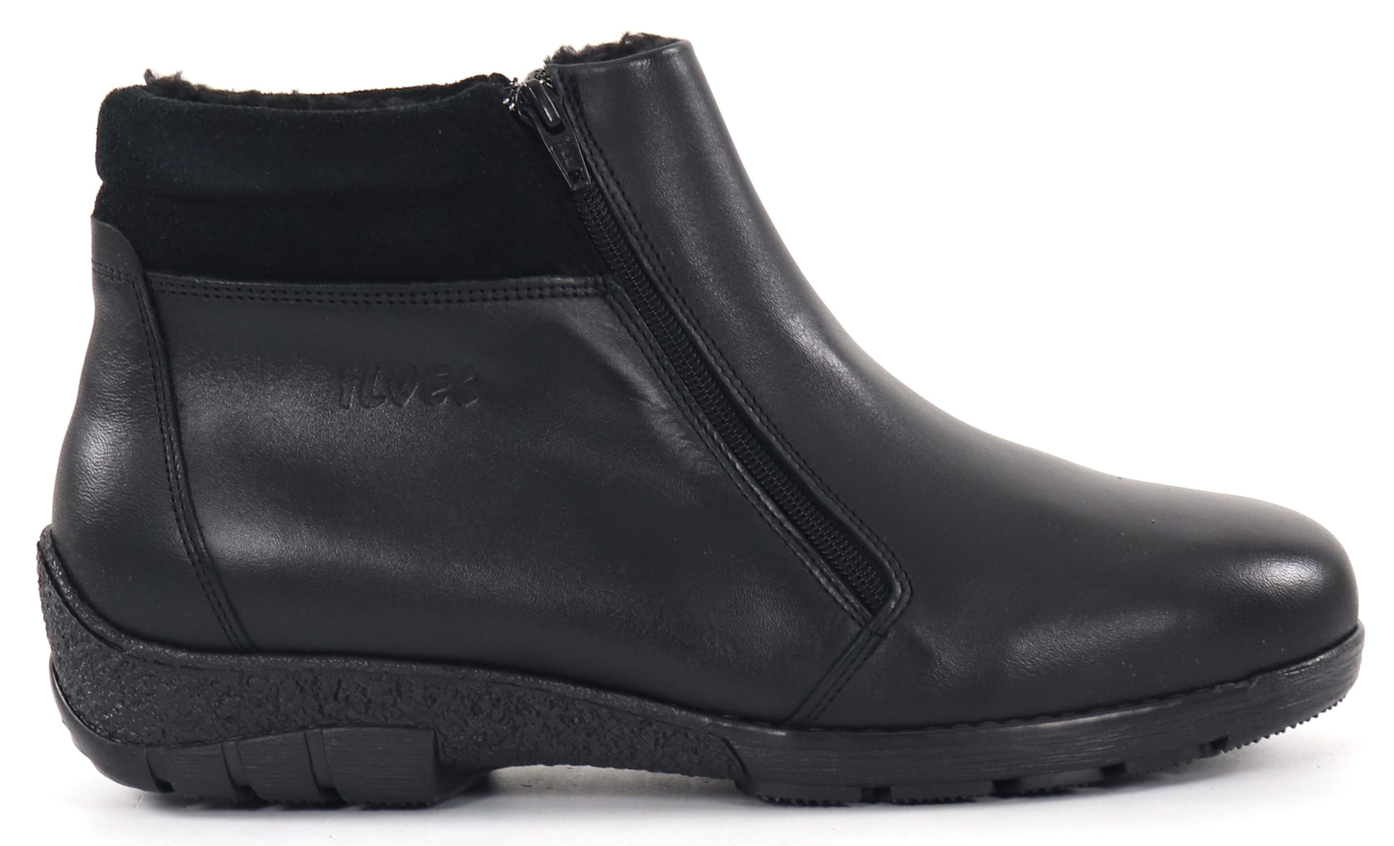Stövletter med varma foder och breda läster, äkta läder. Slitstark, strukturerad yttersula. Dragkedjor på båda sidor gör den lättare att ta på!