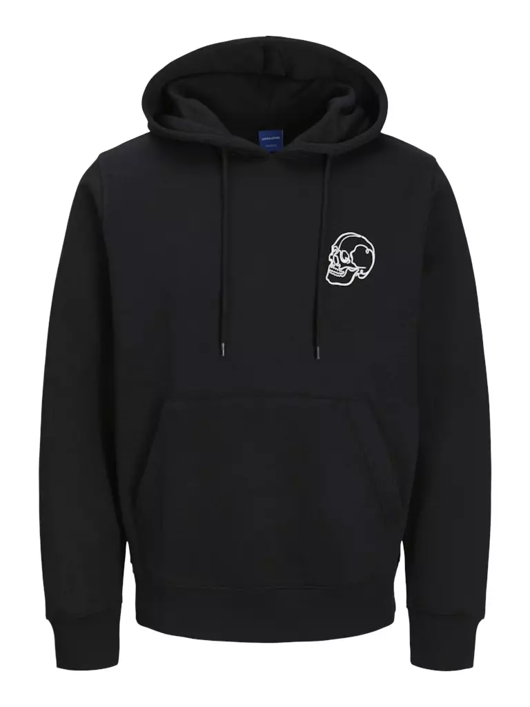 Trendig och mjuk hoodie för herr med dödskalletryck fram och bak.