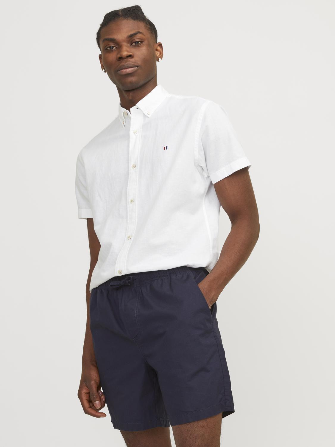 Kortärmad skjorta gjord av en blandning av bomull och linne.