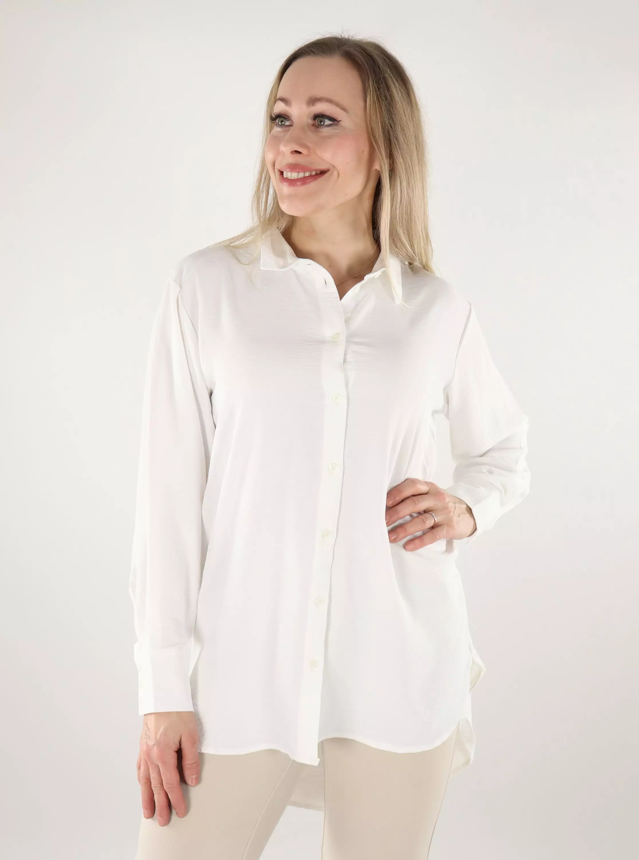 En ledig skjorta med en längre, rundad fåll. Tillverkad i något stretchigt material!
