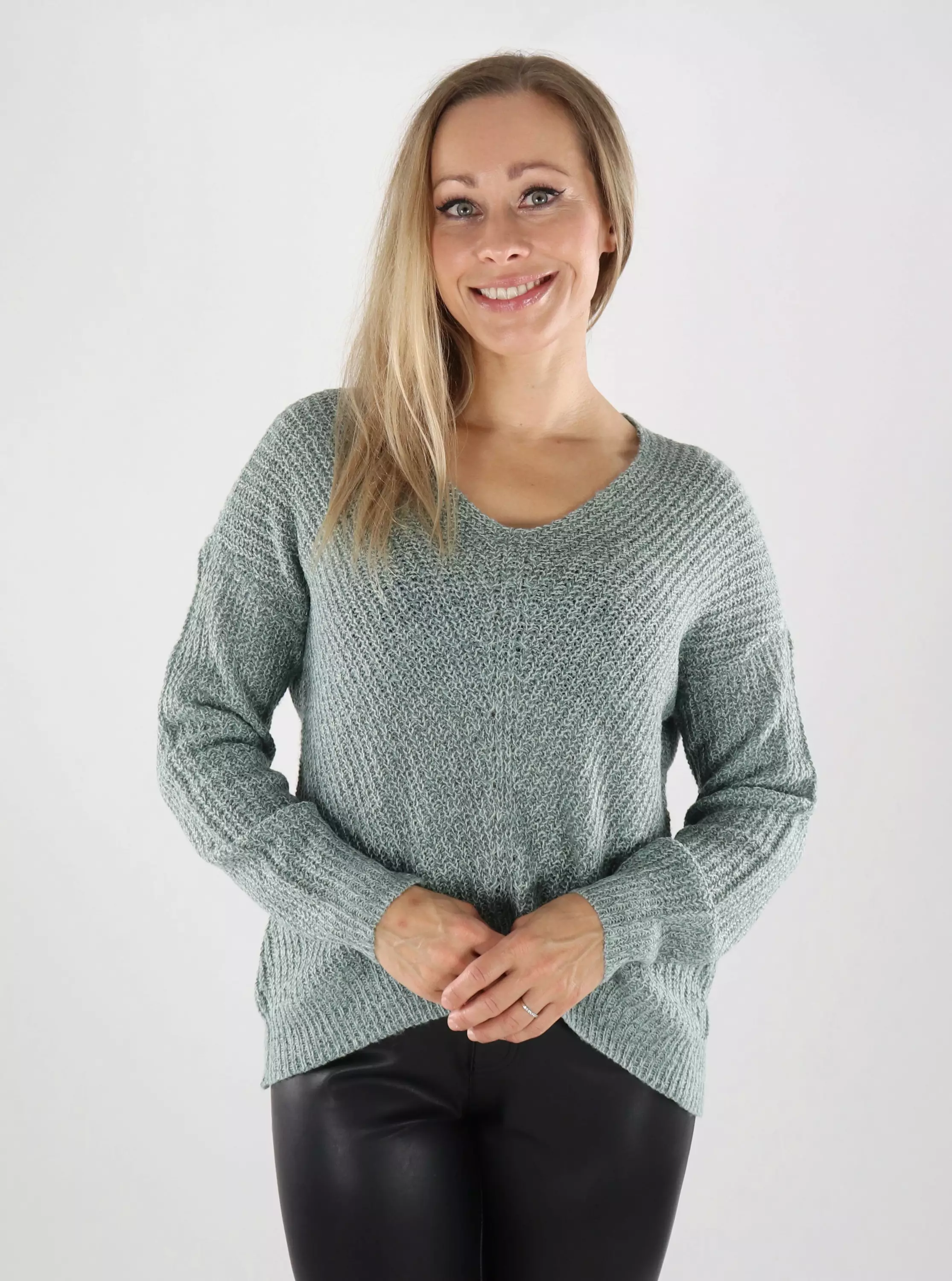 En avslappnad tröja med V-ringning. Det mjuka och stretchiga materialet gör den till ett basplagg för vardagsbruk!