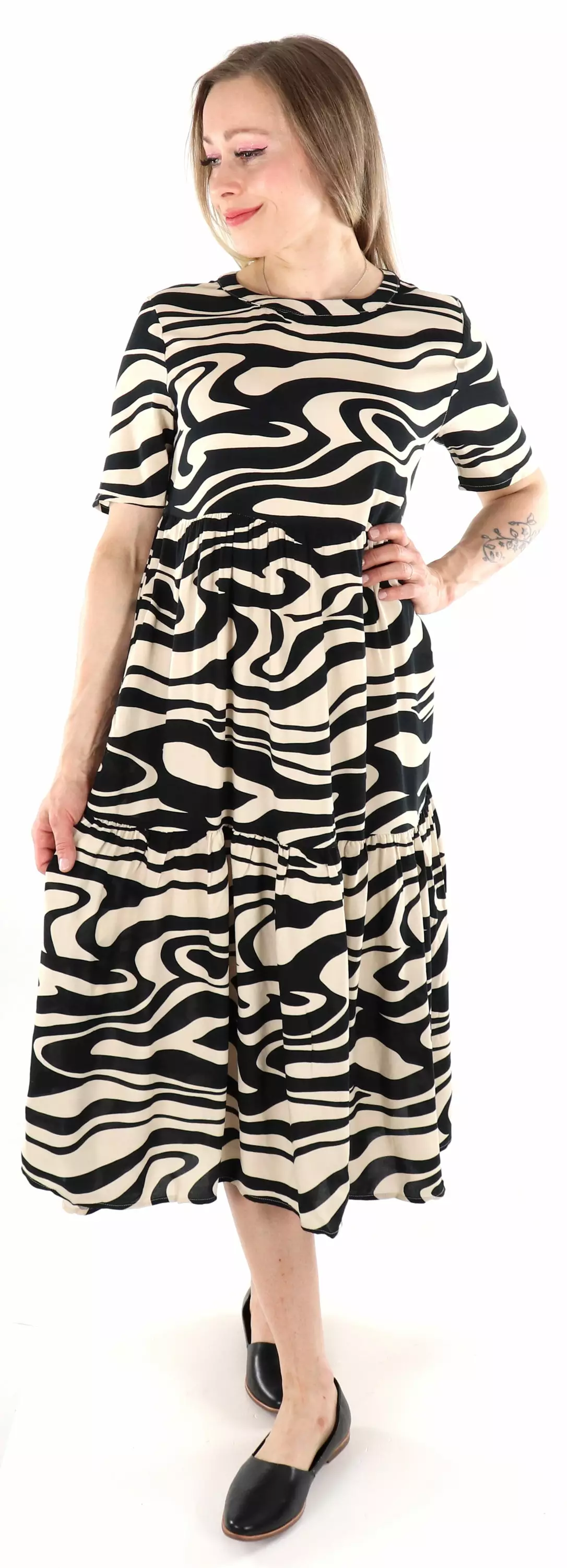 En mönstrad midi-lång klänning som passar perfekt till både vardag och fest!
