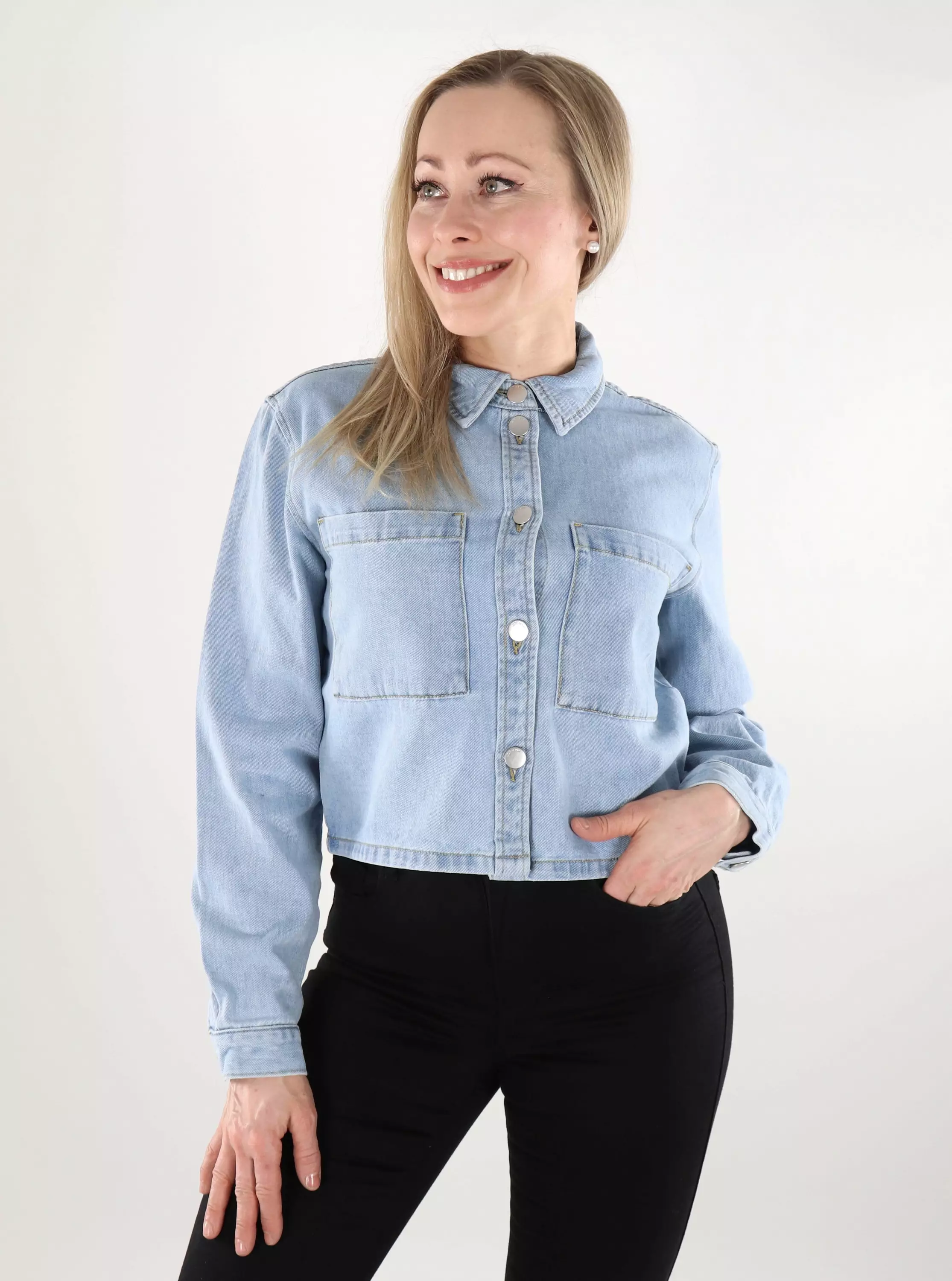 JDY kort jeansjacka för damer Boxy Shacket ljusblå
