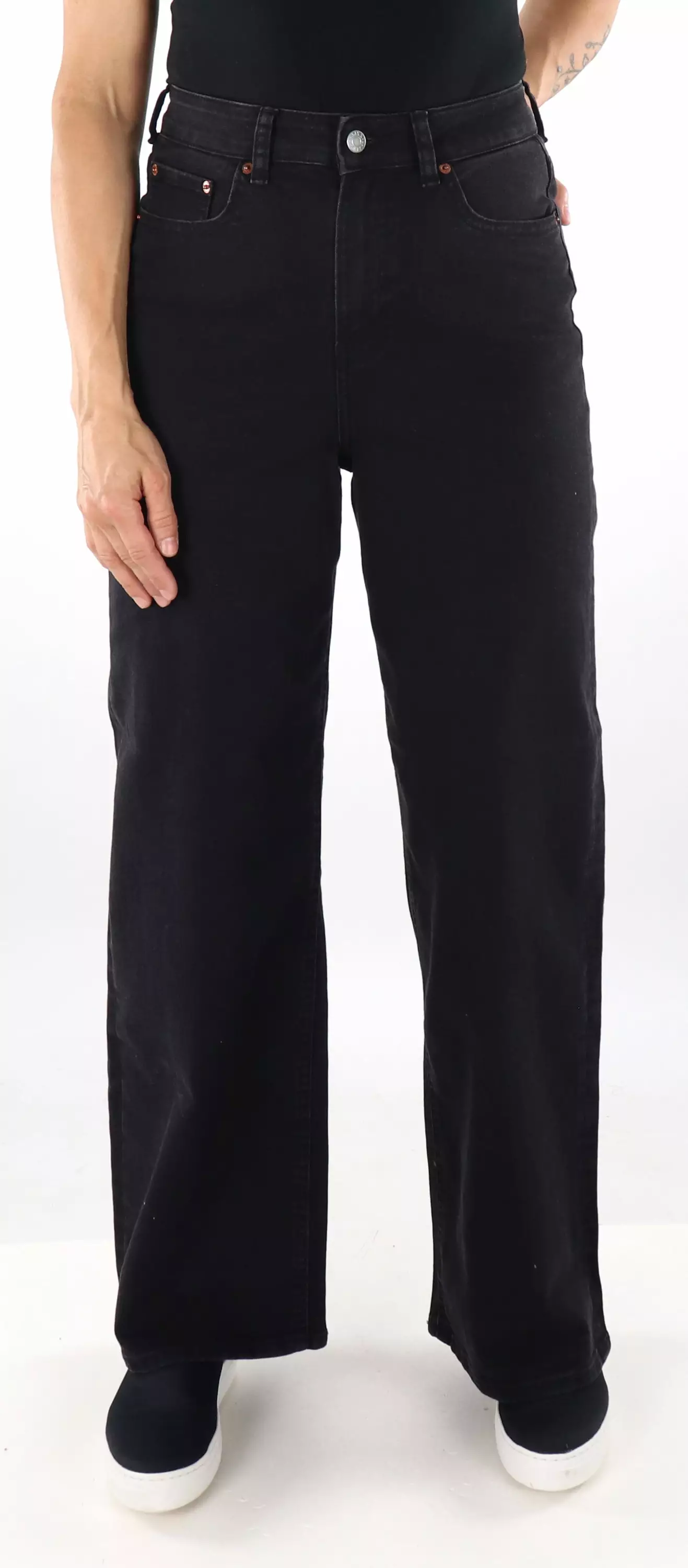 Modellen är 165 cm lång, bär storlek W27/L32.