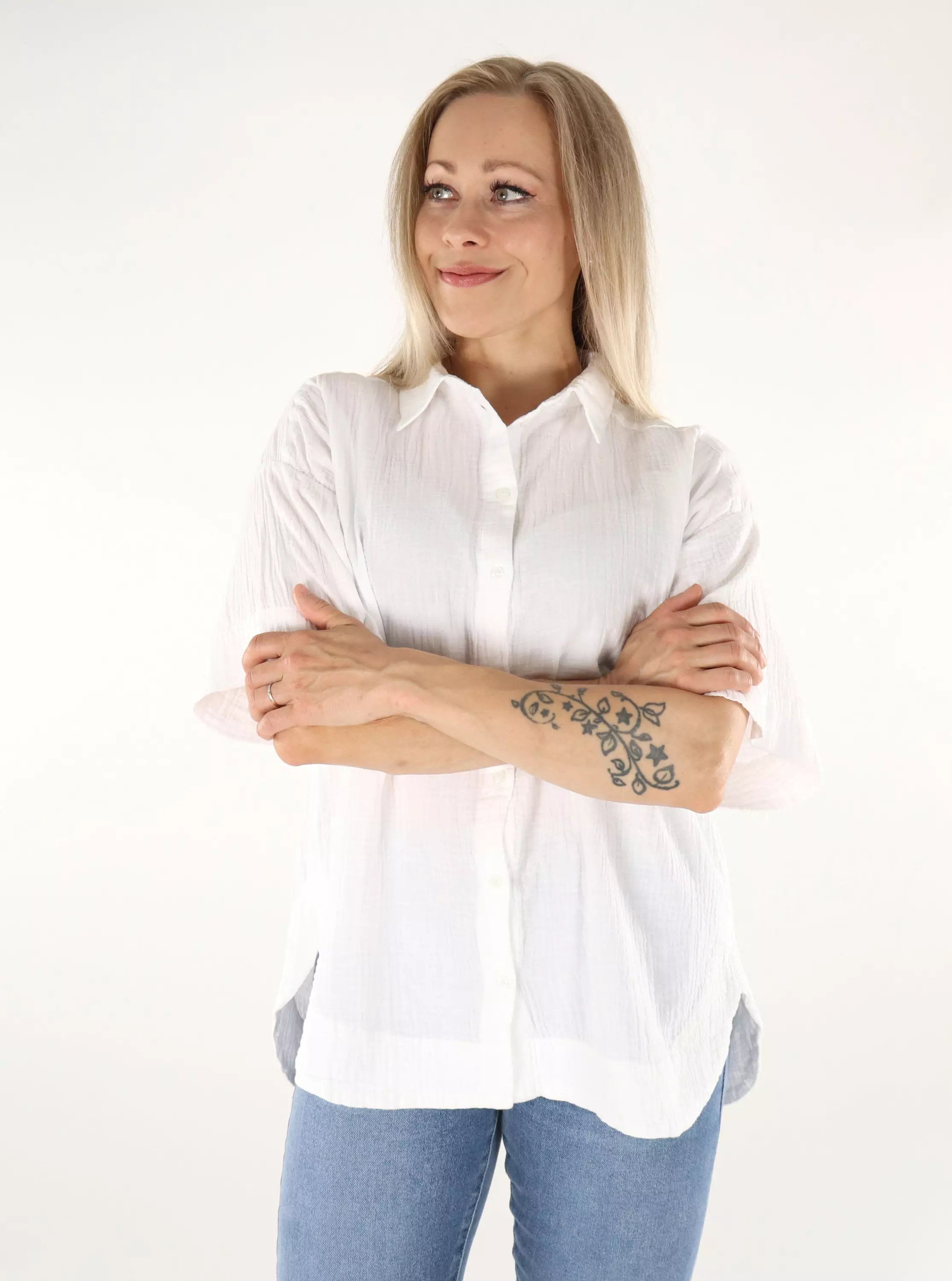 En mjuk skjorta av muslintyg med rundad fåll.